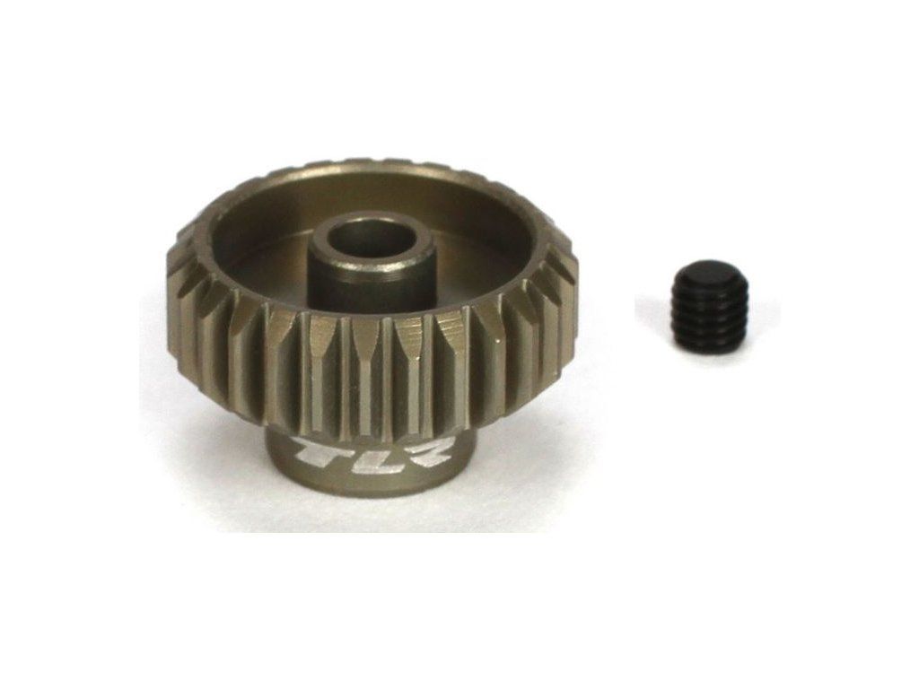 TLR pastorek na hřídel 3.17 mm (1/8") s 27 zuby a modulem ozubení 48DP pro RC modely aut. Vyrobeno z hliníkové slitiny. Součástí balení je červík.