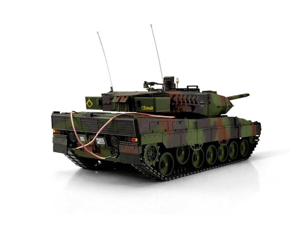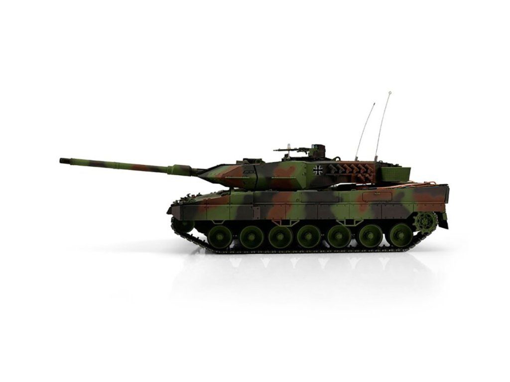 S hmotností kolem osmi kilogramů je Leopard 2A6 ideální pro náročného zákazníka. Profesionální edice je vybavena technologií desek plošných spojů 2,4 GHz a novým reproduktorem. Tento model má vynikající jízdní vlastnosti, širokou škálu funkcí a realistický zvuk. Vysoce kvalitní řetězy, hnací a vodicí kola s válečky, stejně jako spodní část trupu a bojová věž jsou vyrobeny z kovu. Mnoho malých dílů, jako je munice a různé nálepky, dokonale doplňují repliku v reálném měřítku.