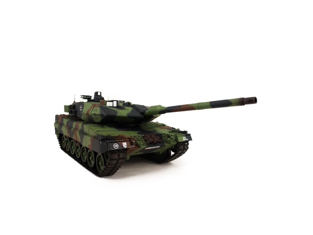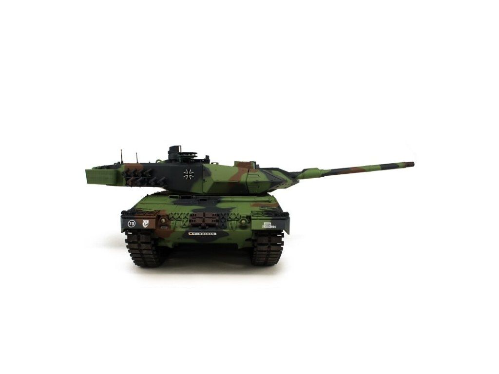 S hmotností kolem čtyř a půl kilogramů je LEOPARD 2A6 NATO kamufláž ideální pro začínající tankisty. V technologií desek plošných spojů 2,4 GHz a reproduktorem. Tento model má vynikající jízdní vlastnosti, realistický zvuk, mnoho malých dílů a různých samolepek dokonale završuje repliku modelu.