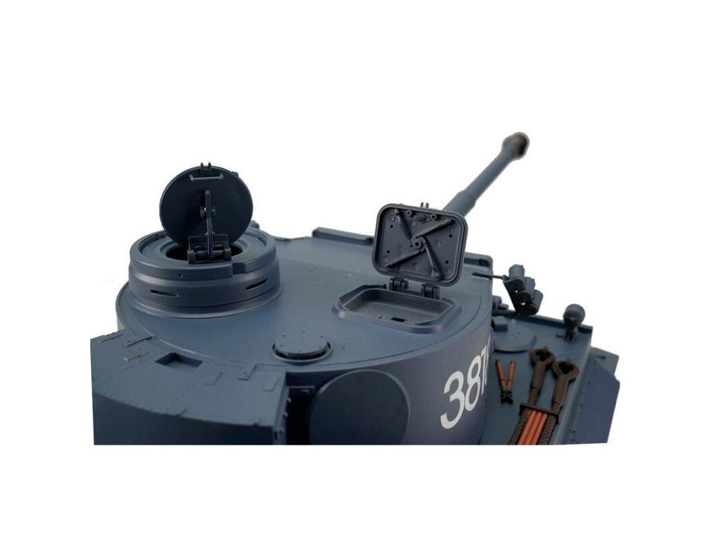 S hmotností kolem tří kilogramů je TIGER I šedá kamufláž ideální pro začínající tankisty. V technologií desek plošných spojů 2,4 GHz a reproduktorem. Tento model má vynikající jízdní vlastnosti, realistický zvuk, mnoho malých dílů a různých samolepek dokonale završuje repliku modelu.