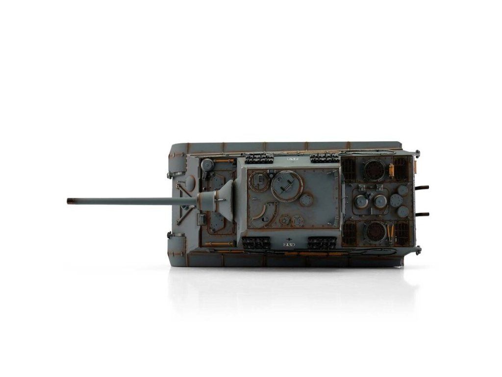 S hmotností kolem sedmi kilogramů je Jagdtiger ideální pro náročného zákazníka. V profesionální edici se vyznačuje vynikající kvalitou barvy airbrush, technologií desek plošných spojů 2,4 GHz a novým reproduktorem. Tento model má vynikající jízdní vlastnosti, širokou škálu funkcí a realistický zvuk. Vysoce kvalitní pásy, hnací a vodicí kola s válečky, stejně jako spodní část trupu a bojová věž jsou vyrobeny z kovu. Mnoho malých dílů a různých samolepek dokonale završuje repliku věrného měřítka.
