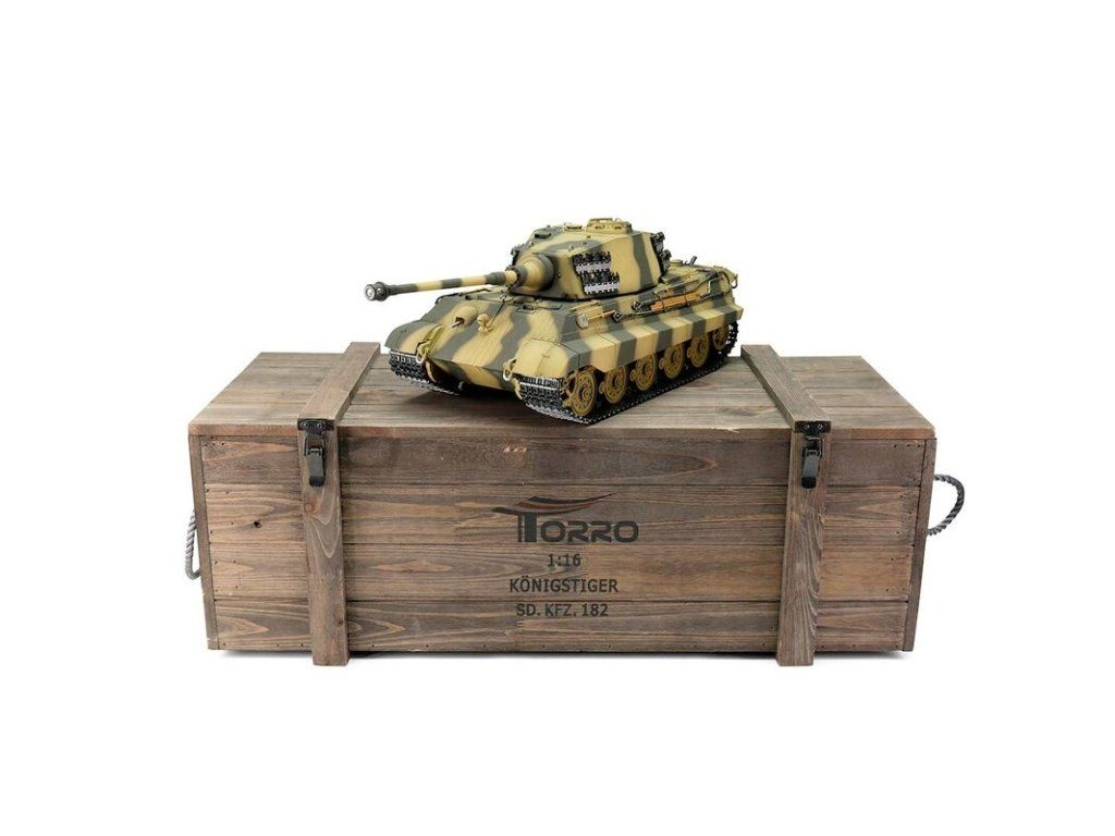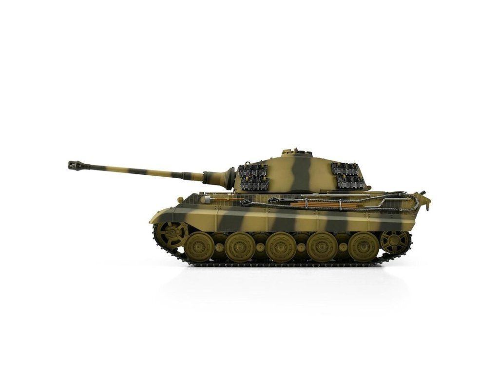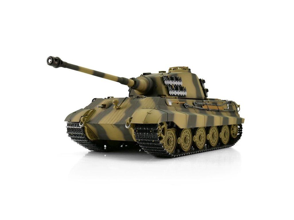 S hmotností kolem sedmi kilogramů je Königstiger ideální pro náročného zákazníka. V profesionální edici se vyznačuje vynikající kvalitou barvy airbrush, technologií desek plošných spojů 2,4 GHz a novým reproduktorem. Tento model má vynikající jízdní vlastnosti, širokou škálu funkcí a realistický zvuk. Vysoce kvalitní pásy, hnací a vodicí kola s válečky, stejně jako spodní část trupu a bojová věž jsou vyrobeny z kovu. Mnoho malých dílů a různých samolepek dokonale završuje repliku věrného měřítka.
