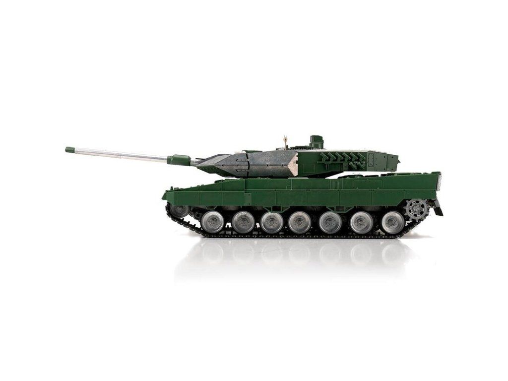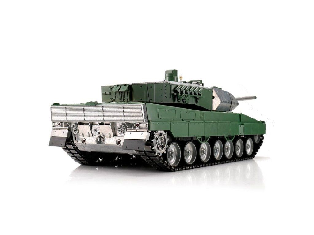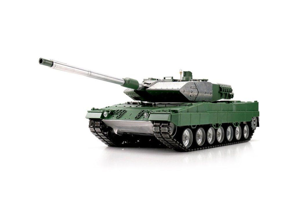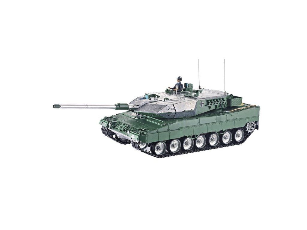 Výkonný model tanku má RC ovládání 2,4 GHz. Vozidlo je vybaveno IR bitevním systémem, takže jsou možné bitvy s vozidly ze stejné série. Motory s optimalizovaným točivým momentem dodávají modelu Leopard 2A6 přesnou a plynulou jízdu. Kovové převody s robustními převody a vylepšeným převodem zajišťují větší výkon. Díky proporcionálnímu ovládání se můžete s tankem přiblížit velmi pomalu a plynule zvyšovat rychlost. Leopard 2A6 se pohybuje dopředu a dozadu, také s otočením doleva a doprava. Lze jej také na místě otočit doleva nebo doprava. Můžete zvednout a spustit dělo a otočit věž o 360 stupňů. Realistický zážitek završují různé zvuky motoru, zpětný zákluz hlavně, záblesk hlavně a kouř z výfuku.