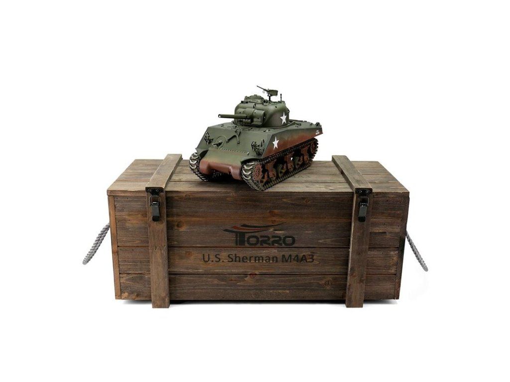 TORRO tank PRO 1/16 RC M4A3 Sherman 75mm kamufláž zelená - infra IR - Servo
