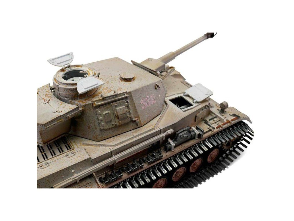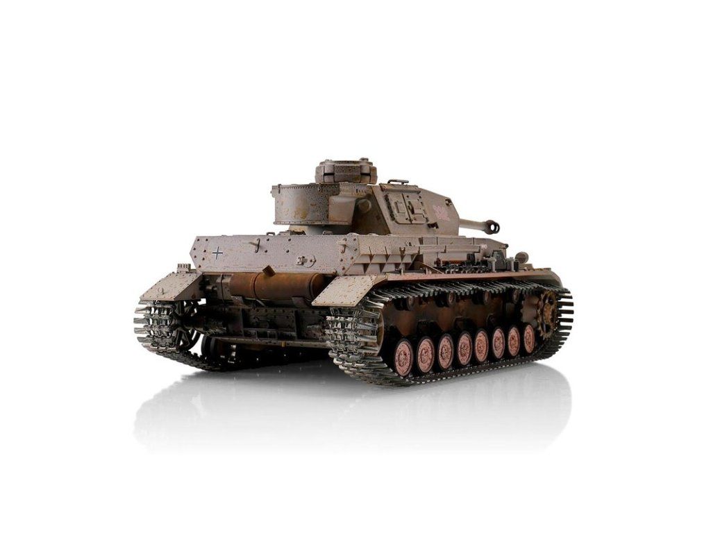 Výkonný model tanku má RC ovládání 2,4 GHz. Vozidlo je vybaveno BB Airosft systémem, takže jsou možné bitvy jako v reálném boji. Motory s optimalizovaným točivým momentem dodávají modelu PzKpfw IV přesnou a plynulou jízdu. Kovové převody s robustními převody a vylepšeným převodem zajišťují větší výkon. Díky proporcionálnímu ovládání se můžete s tankem přiblížit velmi pomalu a plynule zvyšovat rychlost. PzKpfw IV se pohybuje dopředu a dozadu, také s otočením doleva a doprava. Lze jej také na místě otočit doleva nebo doprava. Můžete zvednout a spustit dělo a otočit věž o 360 stupňů. Realistický zážitek završují různé zvuky motoru a kouř z výfuku.