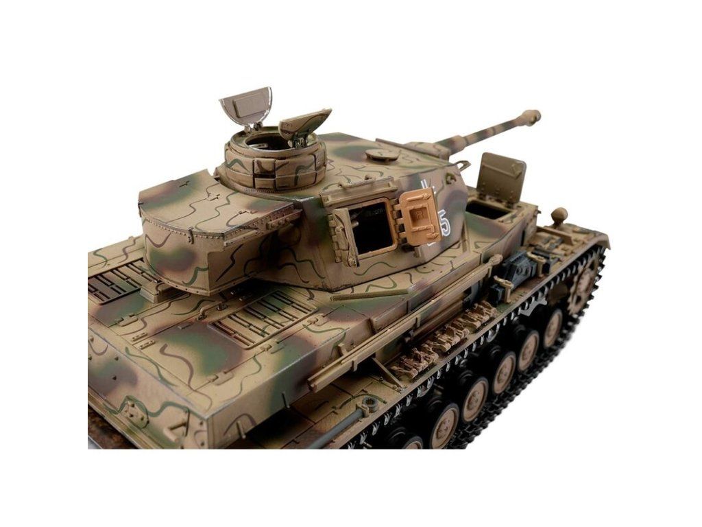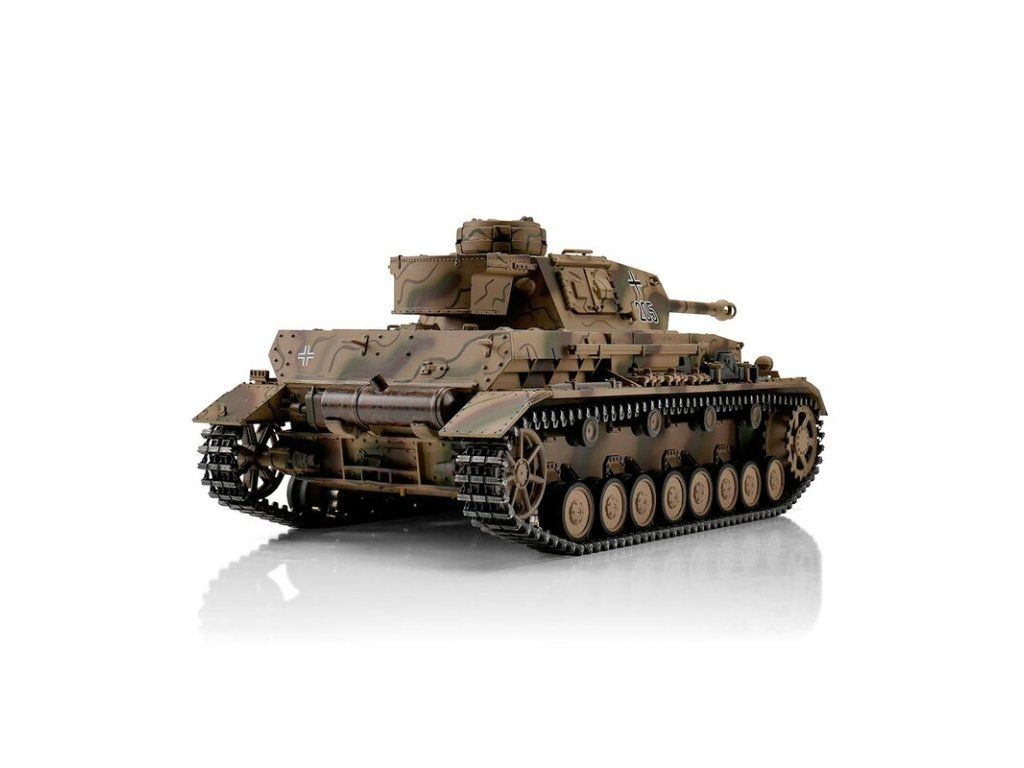 Výkonný model tanku má RC ovládání 2,4 GHz. Vozidlo je vybaveno BB Airosft systémem, takže jsou možné bitvy jako v reálném boji. Motory s optimalizovaným točivým momentem dodávají modelu PzKpfw IV přesnou a plynulou jízdu. Kovové převody s robustními převody a vylepšeným převodem zajišťují větší výkon. Díky proporcionálnímu ovládání se můžete s tankem přiblížit velmi pomalu a plynule zvyšovat rychlost. PzKpfw IV se pohybuje dopředu a dozadu, také s otočením doleva a doprava. Lze jej také na místě otočit doleva nebo doprava. Můžete zvednout a spustit dělo a otočit věž o 360 stupňů. Realistický zážitek završují různé zvuky motoru a kouř z výfuku.
