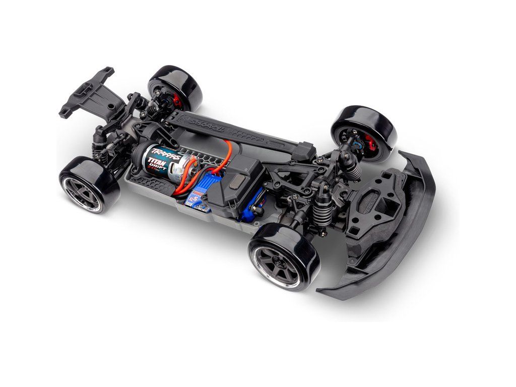 RC model auta Traxxas 4-Tec Drift Ford Mustang v měřítku 1:10 je speciálně upravený pro driftování. Obsahuje nové zavěšení s vysokým úhlem zatáčení, nový stejnosměrný motor, funkci ruční brzdy, bezsponkovou karoserii a upravenou stabilizaci TSM pro driftování. Bluetooth modul v balení.