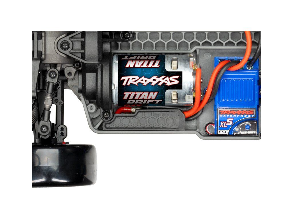 RC model auta Traxxas 4-Tec Drift Ford Mustang v měřítku 1:10 je speciálně upravený pro driftování. Obsahuje nové zavěšení s vysokým úhlem zatáčení, nový stejnosměrný motor, funkci ruční brzdy, bezsponkovou karoserii a upravenou stabilizaci TSM pro driftování. Bluetooth modul v balení.