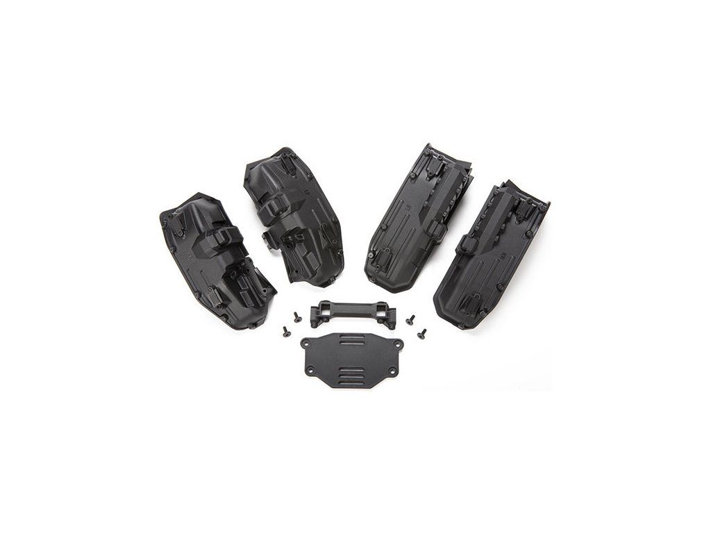 Díl pro modely TRX-4 Sport, Mercedes-Benz G 500, and Mercedes-Benz G 63. Balení obsahuje: blatníky/ kryty otvorů světlometů (8)/ příčná deska deska (1)/ šrouby.