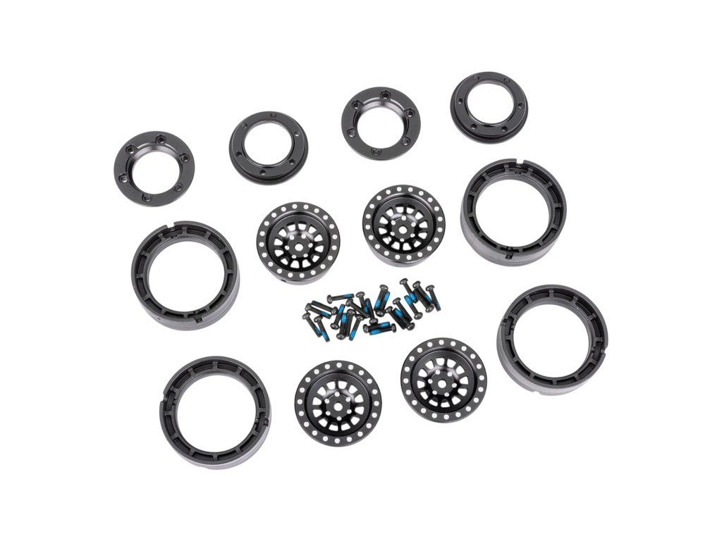 Traxxas disk 1.0" z vysoce odolného hliníku 6061-T6, eloxovaný černý (4 ks). Vhodný pro RC modely aut Traxxas TRX-4M. Systém Beadlock pro montáž pneu bez lepení. Lze použít standardní pneu z TRX-4M nebo Mickey Thompson Baja, včetně zvýšených pneumatik pro High Trail. Unašeč 7 mm.