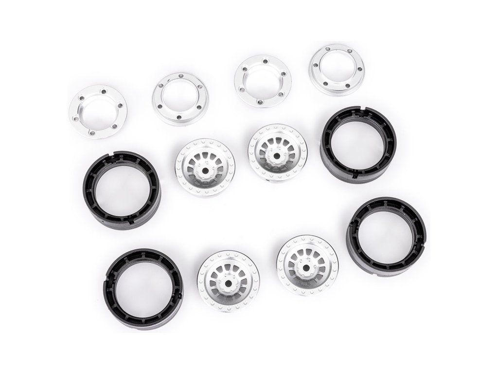 Traxxas disk 1.0" z vysoce odolného hliníku 6061-T6, eloxovaný stříbrný (4 ks). Vhodný pro RC modely aut Traxxas TRX-4M. Systém Beadlock pro montáž pneu bez lepení. Lze použít standardní pneu z TRX-4M nebo Mickey Thompson Baja, včetně zvýšených pneumatik pro High Trail. Unašeč 7 mm.