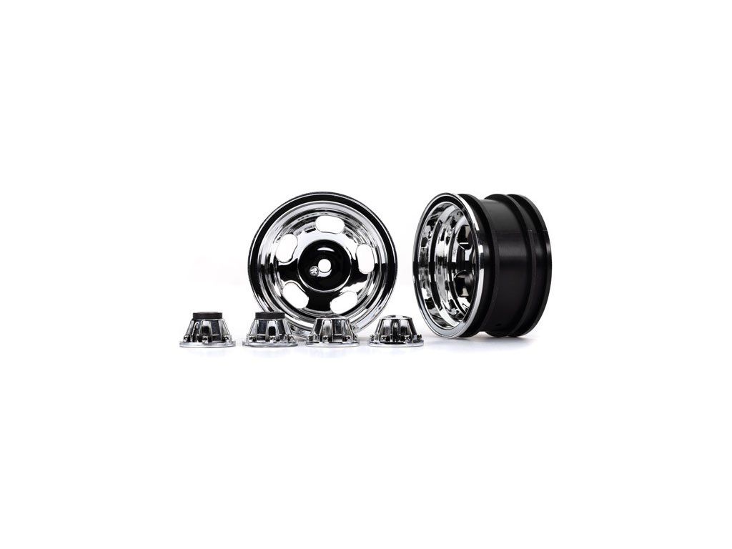 Traxxas disk 2.2" chromovaný (2 ks), včetně středových krytů nábojů kol. Určeno pro montáž na díl 8255A.