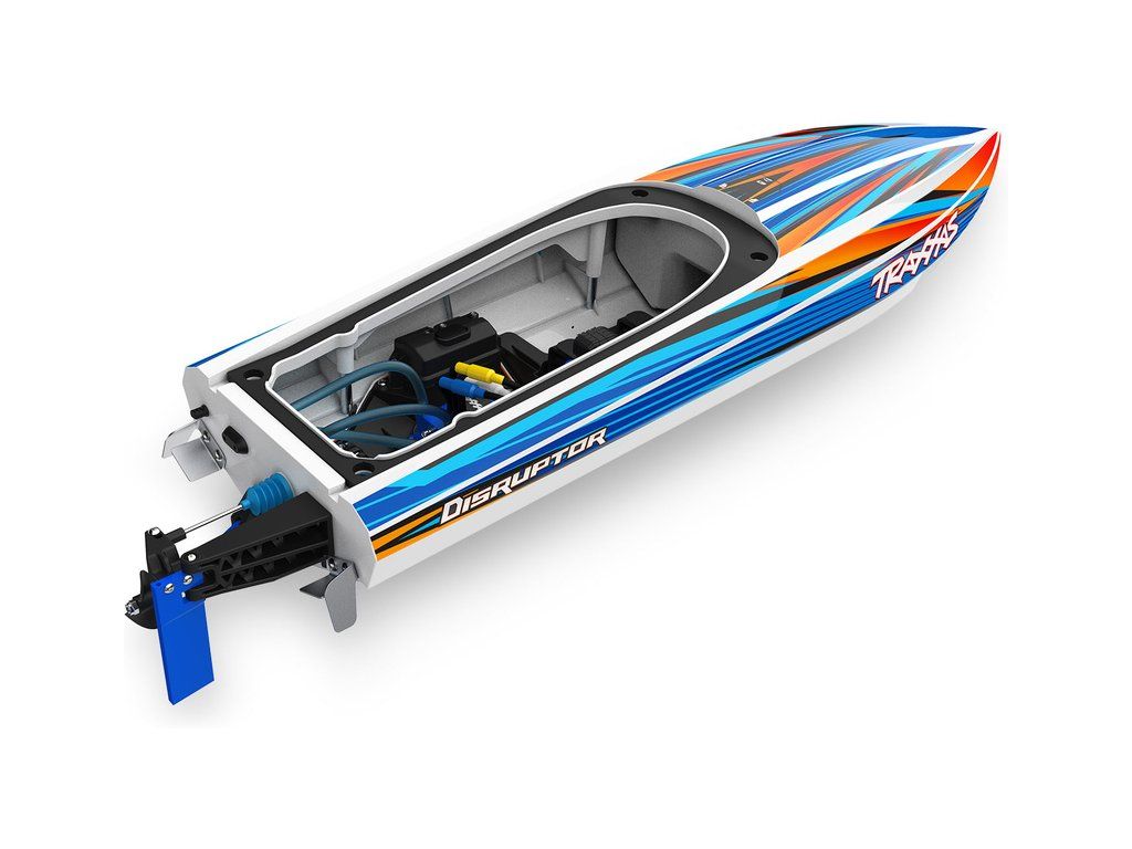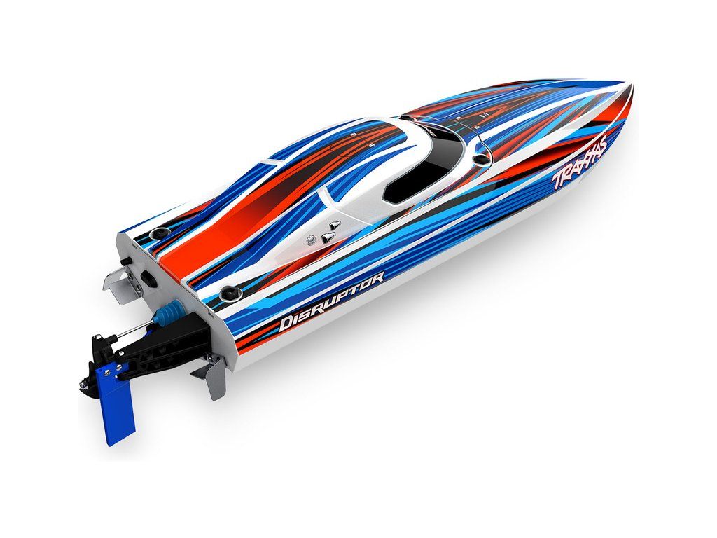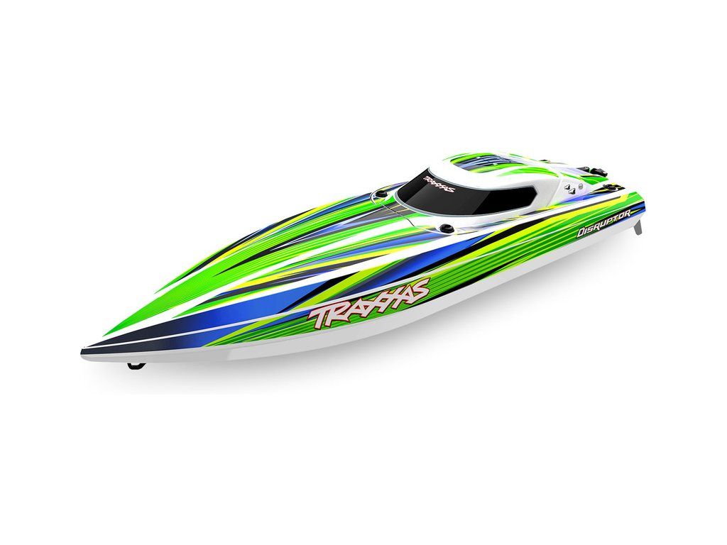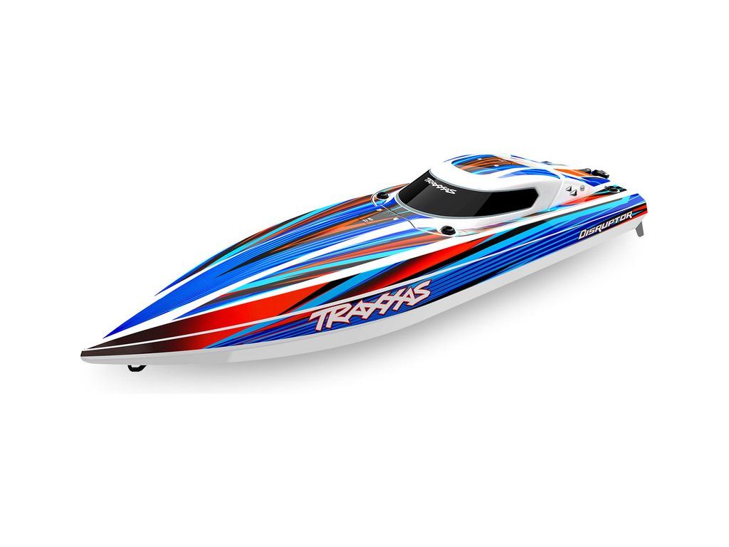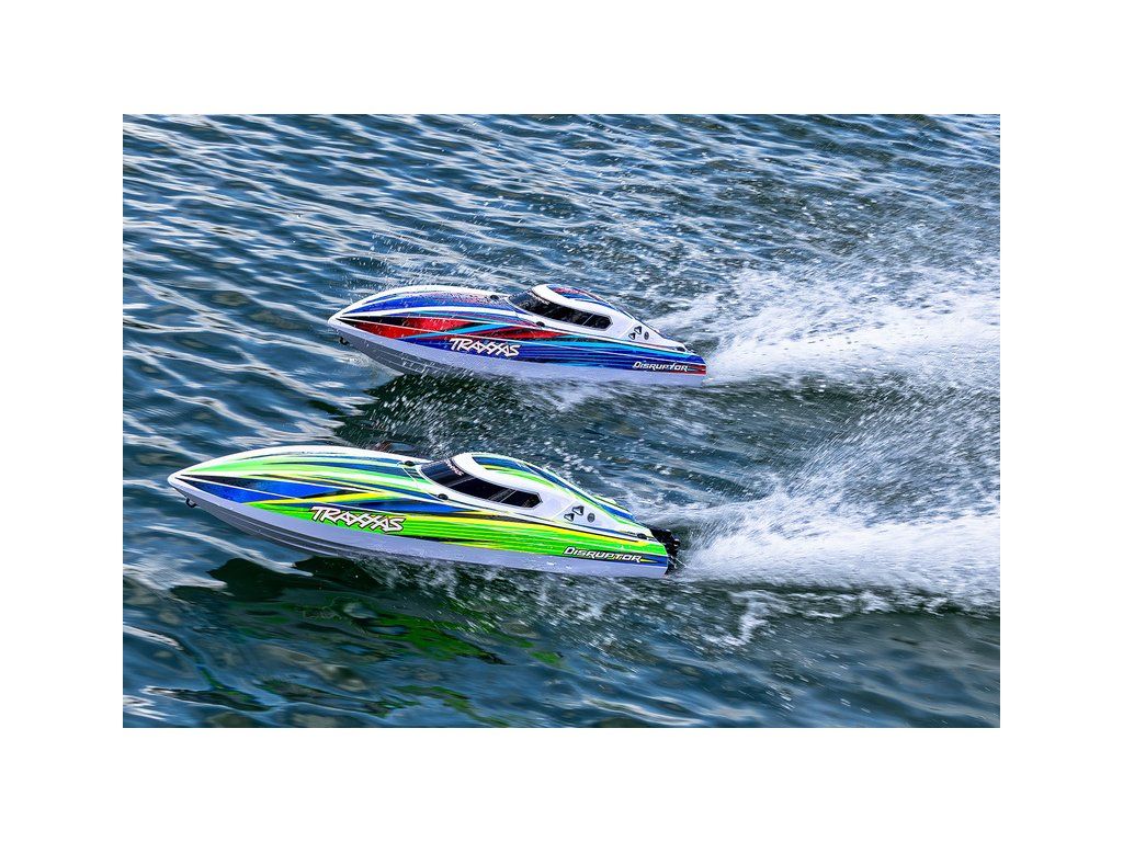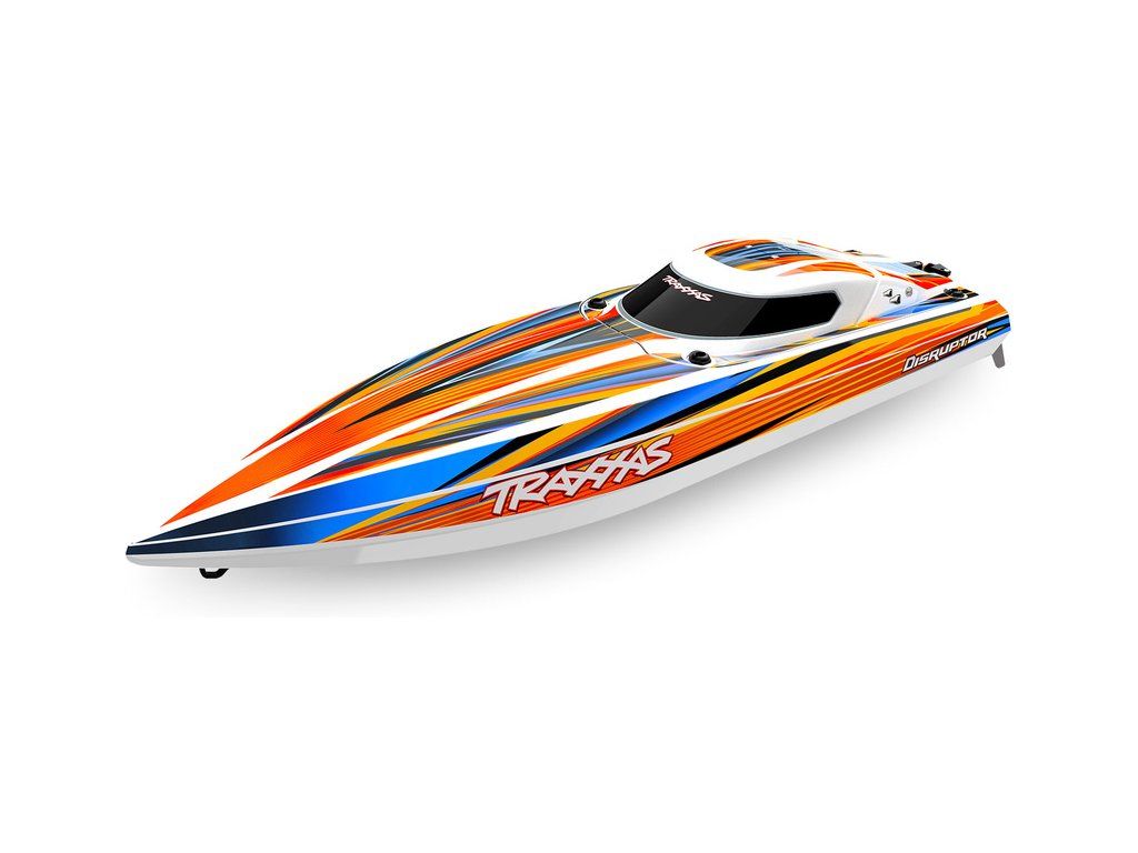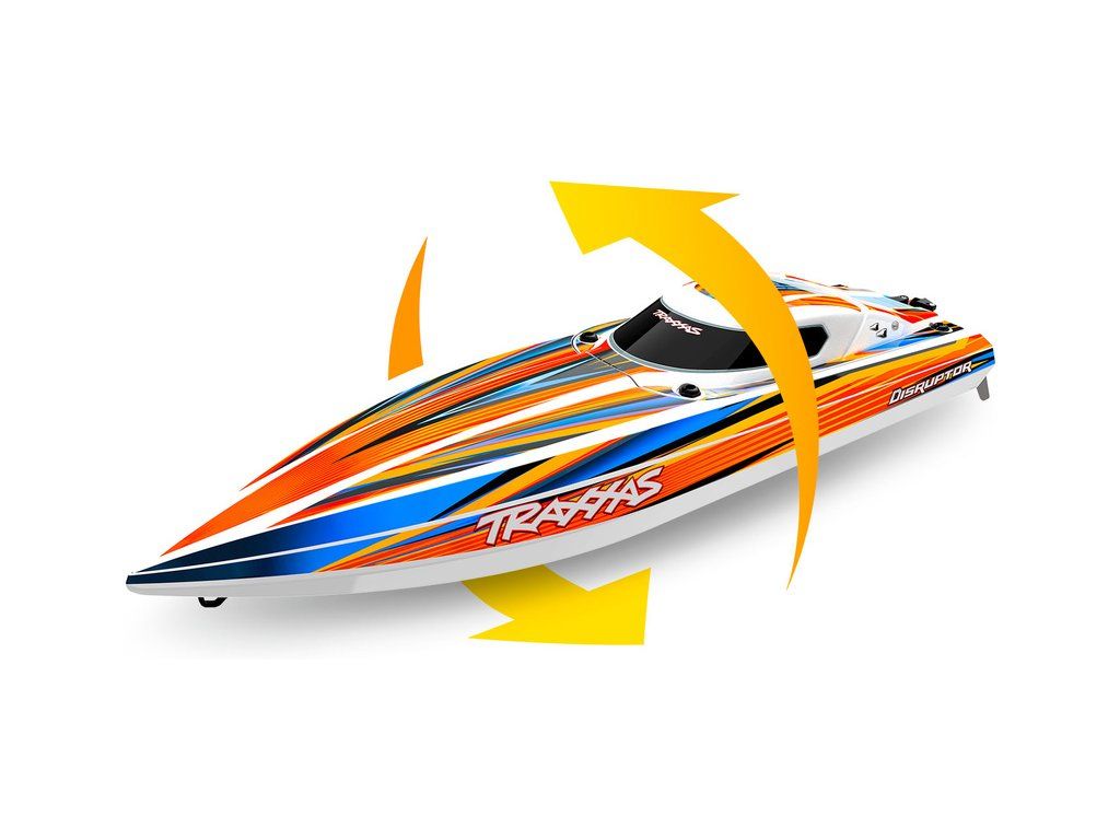 Hbitý a obratný RC model lodi Traxxas Disruptor s délkou 26" a rychlostí až 64 km/h. Odolný trup Deep-V z ABS, výkonný střídavý pohon 4S a duální vodní chlazení. Nová funkce Rapid Right s okamžitým otočením pomocí hybnosti motoru. Bezsponkový kryt. RC souprava TQ.