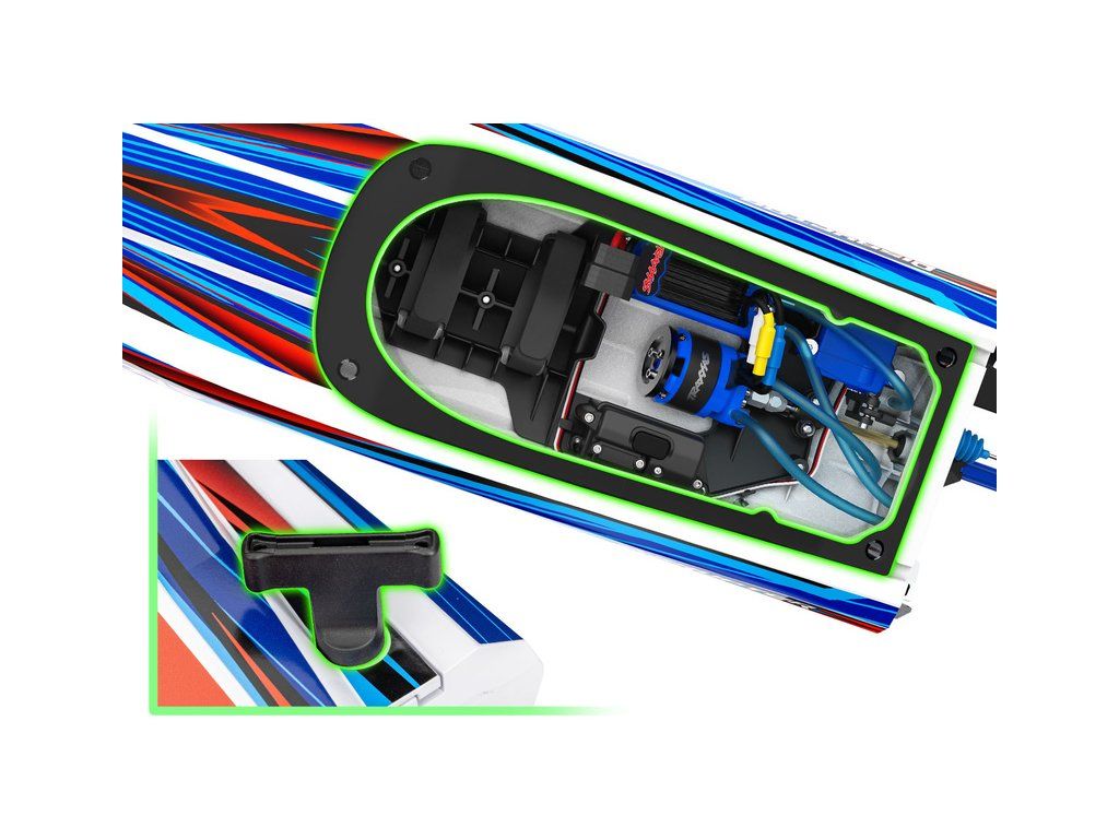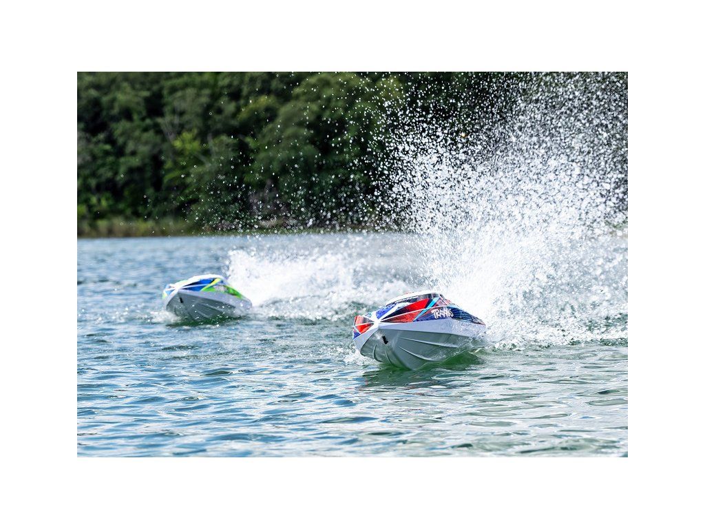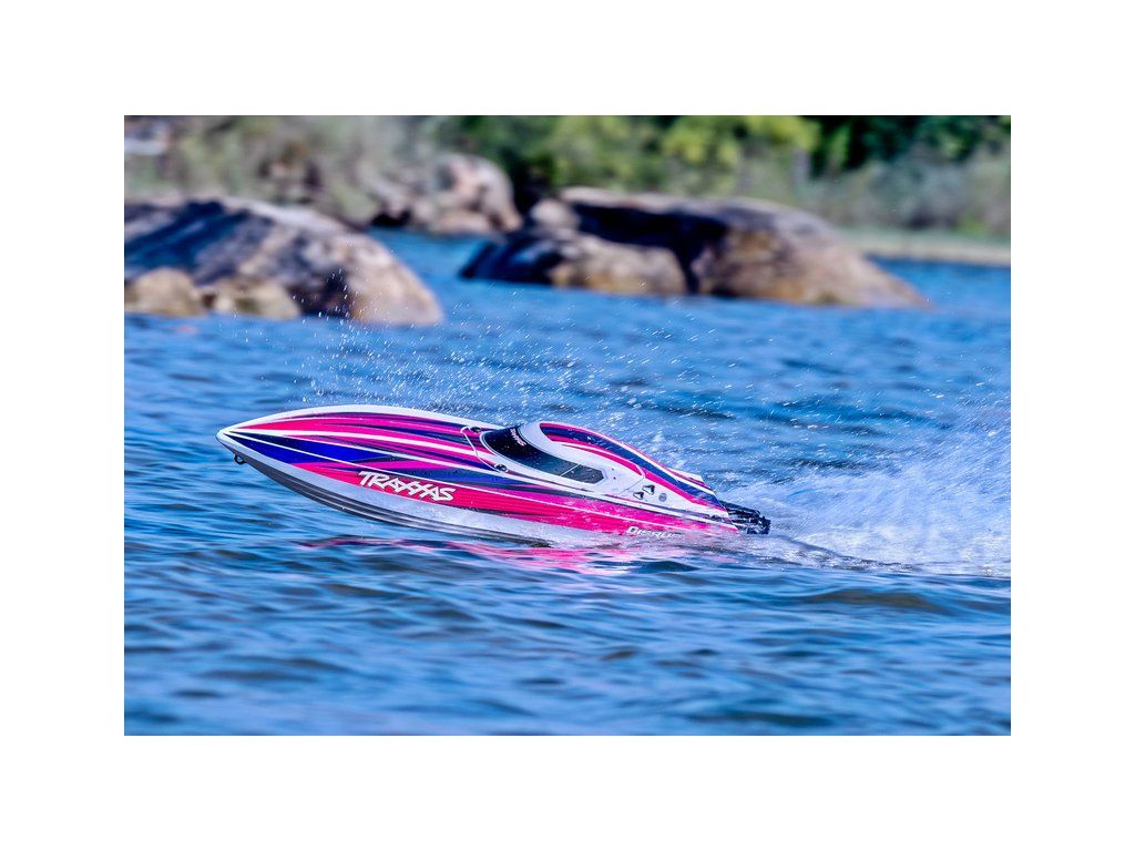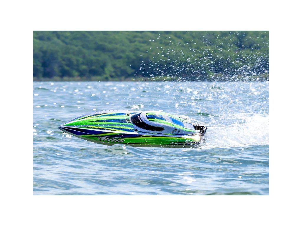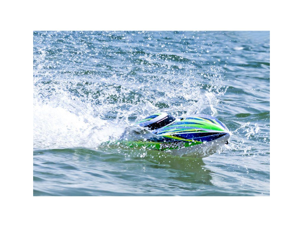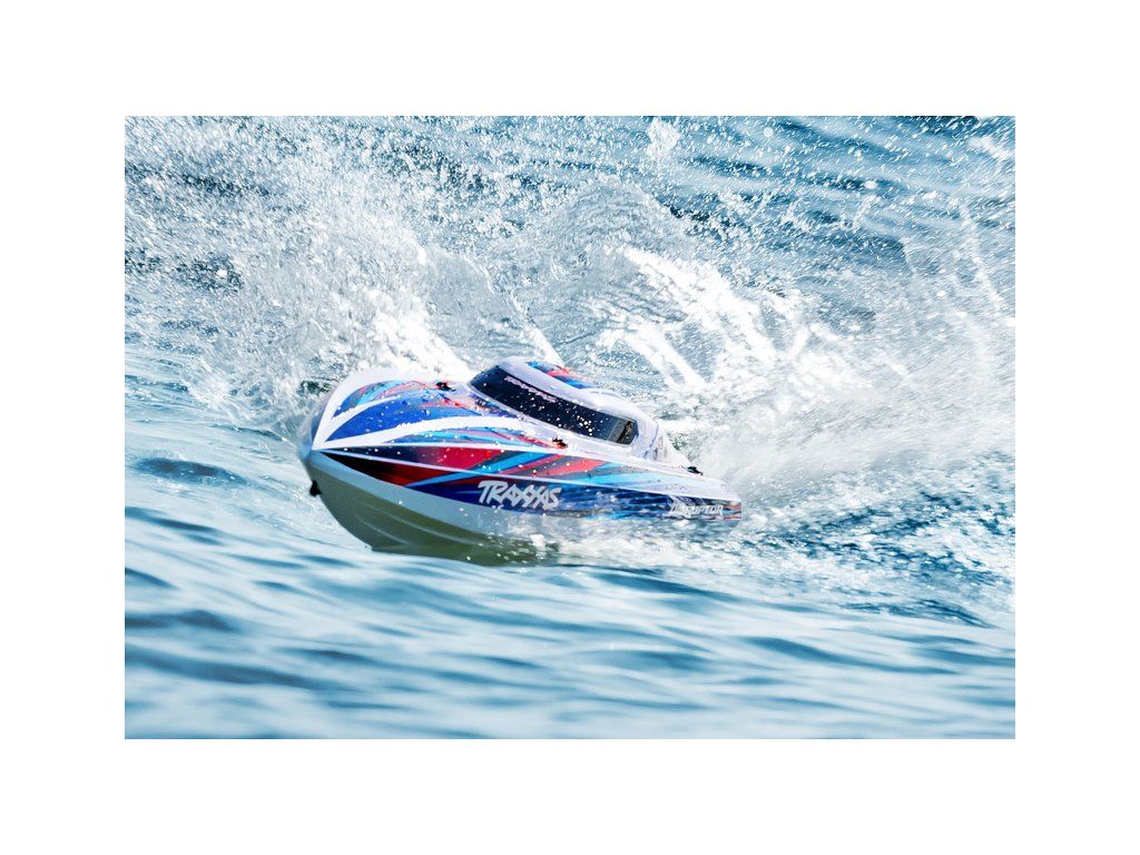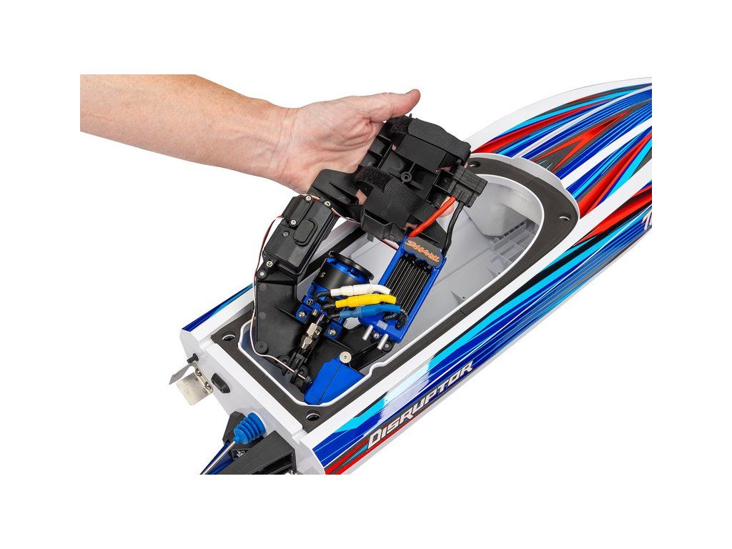 Hbitý a obratný RC model lodi Traxxas Disruptor s délkou 26" a rychlostí až 64 km/h. Odolný trup Deep-V z ABS, výkonný střídavý pohon 4S a duální vodní chlazení. Nová funkce Rapid Right s okamžitým otočením pomocí hybnosti motoru. Bezsponkový kryt. RC souprava TQ.