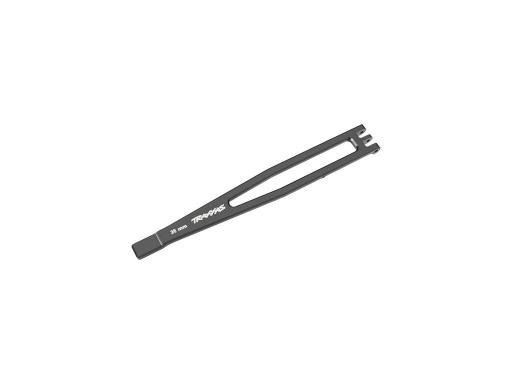 Náhradní díl pro RC modely aut Traxxas 1:10 4-Tec 2.0, drift Ford, Ford Mustang: držák baterie hliníkový šedý. Vhodné pro RC auta 4-Tec® 2.0 s rozvorem 256 mm.