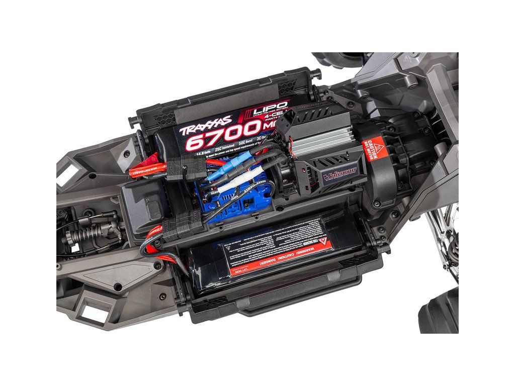 - Pro vyšší výkon a delší jízdní čas dvojice 4S LiPo akumulátorů Traxxas 14.8V 6700mAh 25C iD