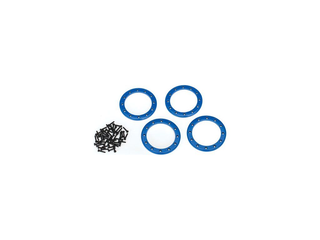 Traxxas hliníkový výztužný bead lock kroužek disků kol Method 105 2.2". Modrý eloxovaný povrch. Balení obsahuje celkem 4 kusy kroužku se sadou šroubů M2x10 mm se zapuštěnou hlavou.