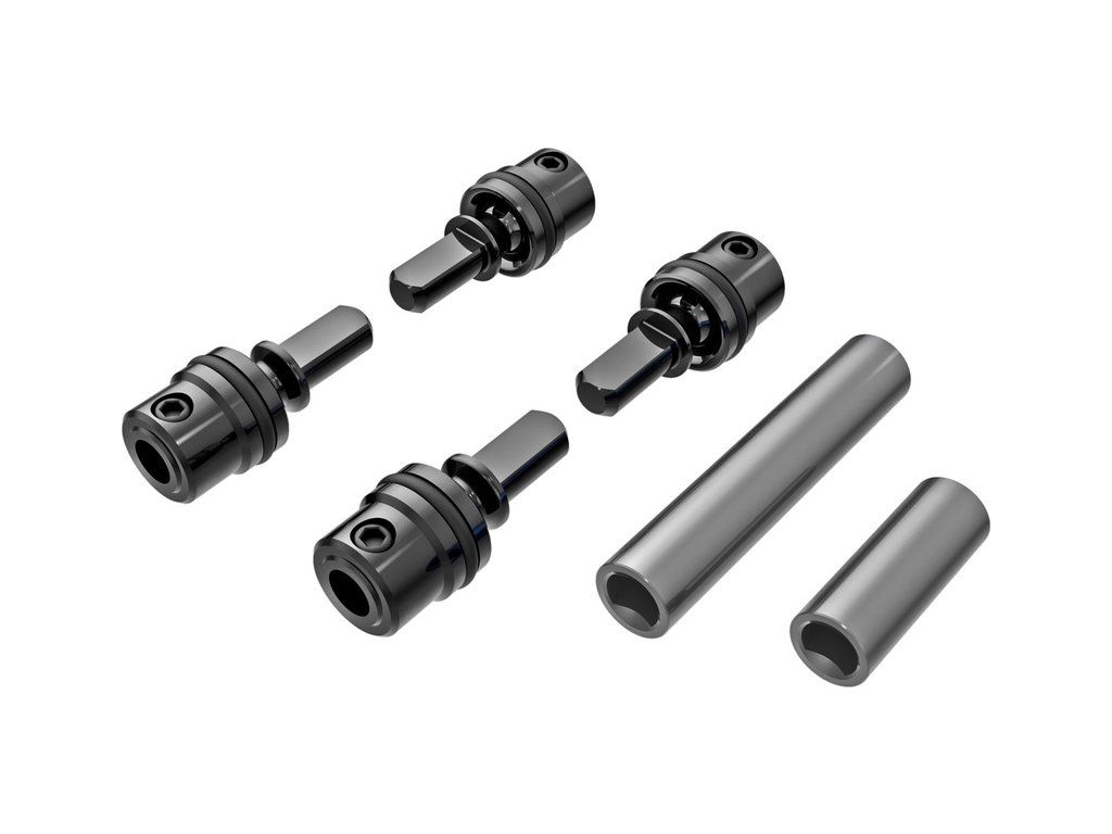 Tuningový díl pro RC modely aut Traxxas TRX-4M: Traxxas hřídel centrální hliníková šedá (samec a samice) (sada). Určeno pro standardní modely TRX-4M. Pro zvýšené modely TRX-4M verze High Trail použijte delší hřídel #9852.