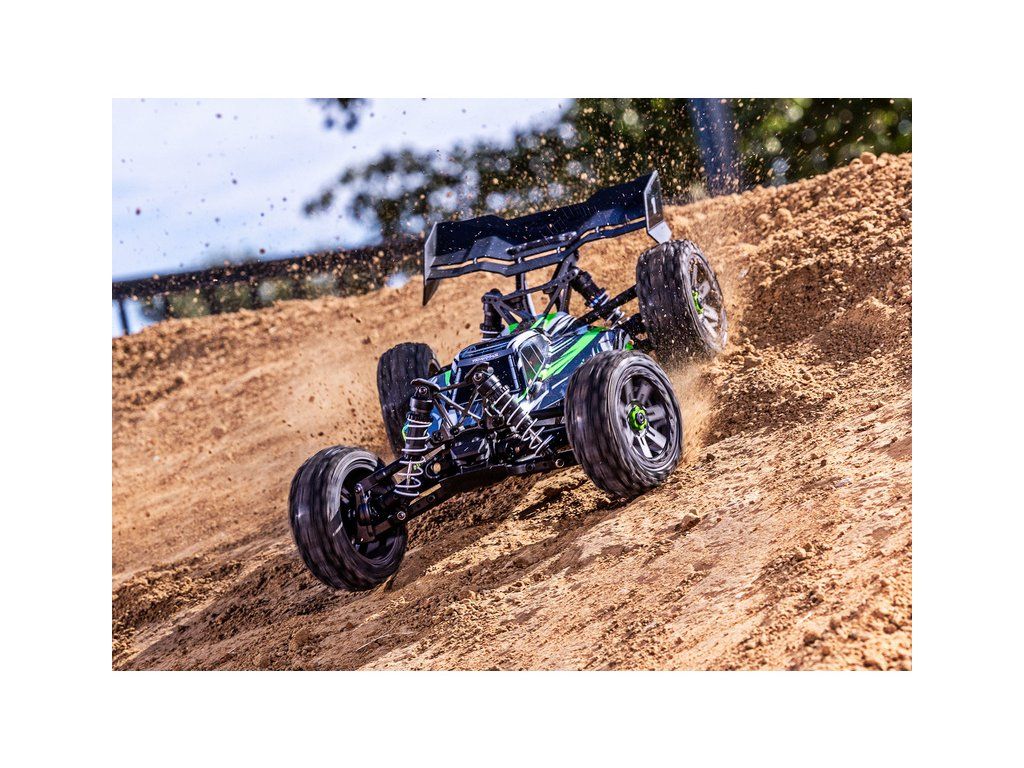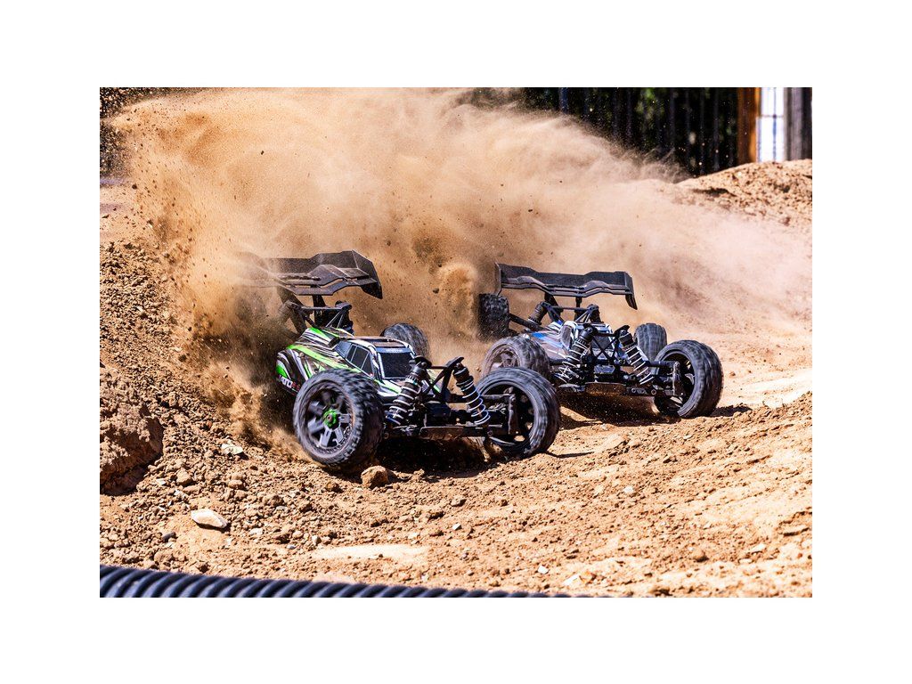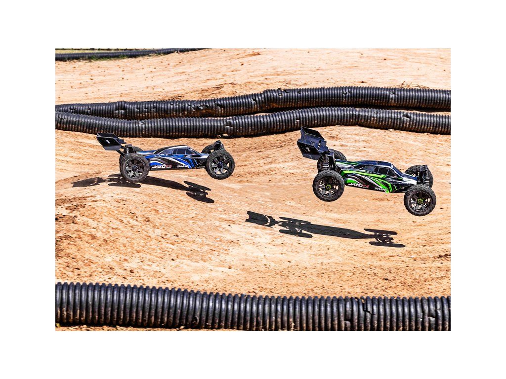 RC buggy Traxxas Jato 1:8 přináší rychlost, odolnost, přesné řízení jako závodní model a hlavně zábavnou jízdu. Pohání ji střídavý motor s regulátorem BL-2S a jezdí až 48 km/h! Obsahuje bezsponkovou karoserii, komponenty pro vysokou odolnost - Extreme Heavy Duty a náhon 4WD. RC souprava TQ 2.4 GHz.