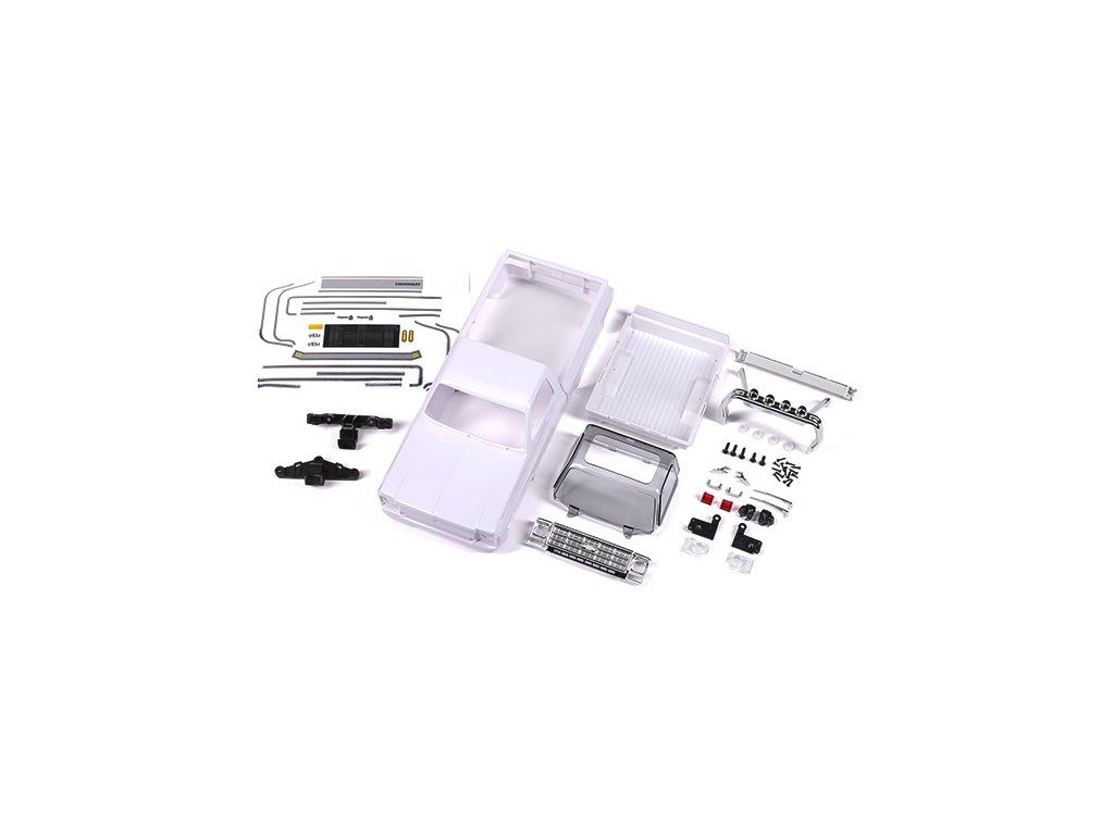 Traxxas karosérie Chevrolet K10 1979 nenabarvená bílá, kompletní (nesestavená), pro RC model auta TRX-4M s delším rozvorem 162 mm (High Trail). Bez-sponková karoserie v měřítku 1:18 z ABS, včetně čirých oken, přední mřížky, bočních zrcátek, klik dveří a další.