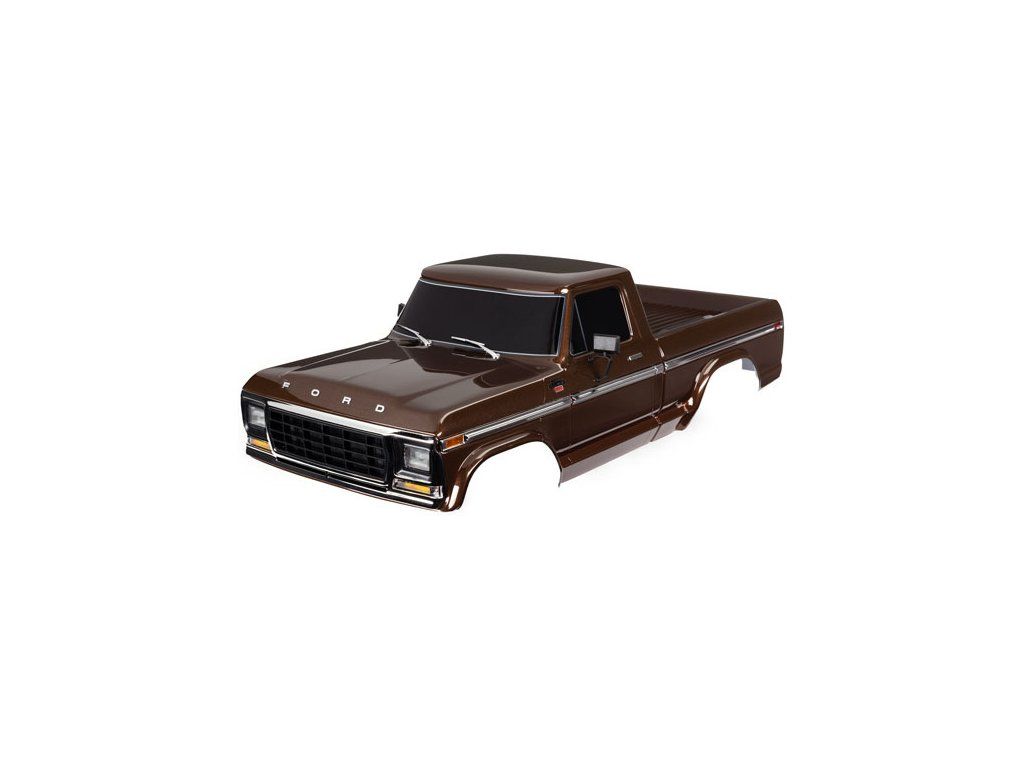 Traxxas karosérie Ford F-150 1979 hnědá metalíza. Kompletní nalakovaná karoserie, včetně mřížky chladiče, zrcátek, klik dveří, stěračů a s bezsponkovým systémem uchycení. Ochranný rám korby se prodává samostatně.