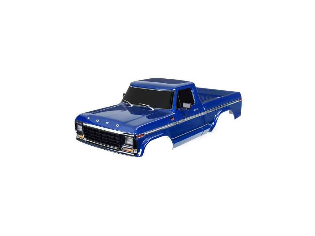 Traxxas karosérie Ford F-150 1979 modrá metalíza. Kompletní nalakovaná karoserie, včetně mřížky chladiče, zrcátek, klik dveří, stěračů a s bezsponkovým systémem uchycení. Ochranný rám korby se prodává samostatně.