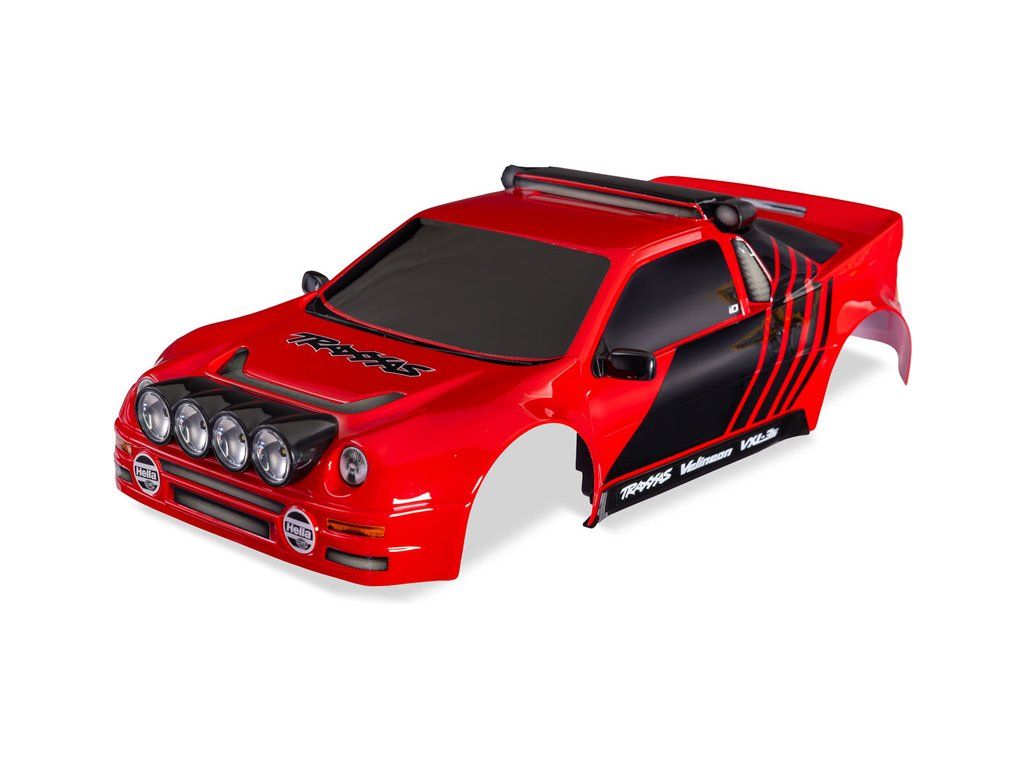 Traxxas karosérie Ford RS200 červená. Hotová, nabarvená a sestavená karoserie s aplikovanými polepy. Včetně bezsponkového držáku, parabol světel, bočních zrcátek, prahů a nasávacích otvorů.
