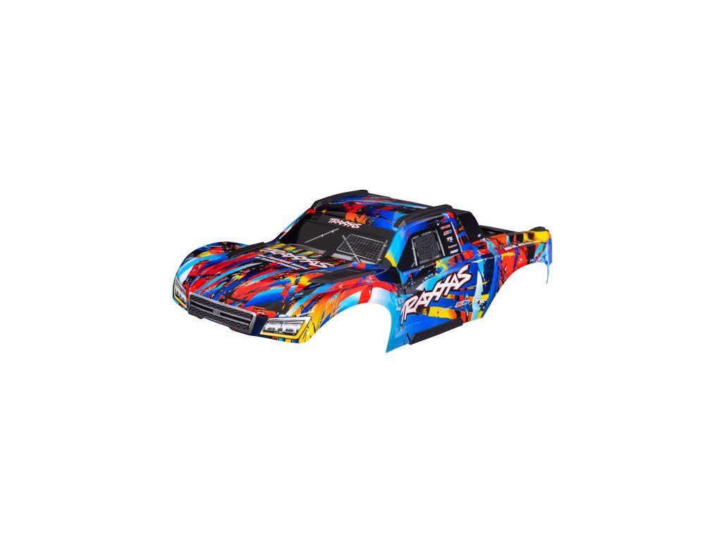 Traxxas karosérie Maxx Slash Rock n' Roll, hotová, nabarvená, sestavená včetně vnitřního rámu a západkového systému, s aplikovanými obtisky. Karoserie je přímo připravená pro montáž na Váš model.