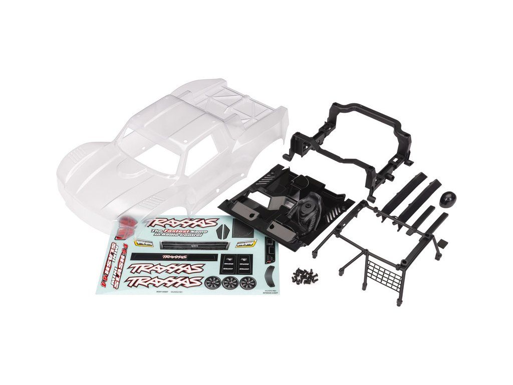 Náhradní díl pro RC model auta 1:12 Traxxas Mini Slash: karosérie Mini Slash čirá. Vyžaduje barvení a dokončení. Včetně dílů kokpitu a bezsponkového uchycení. Arch samolepek.