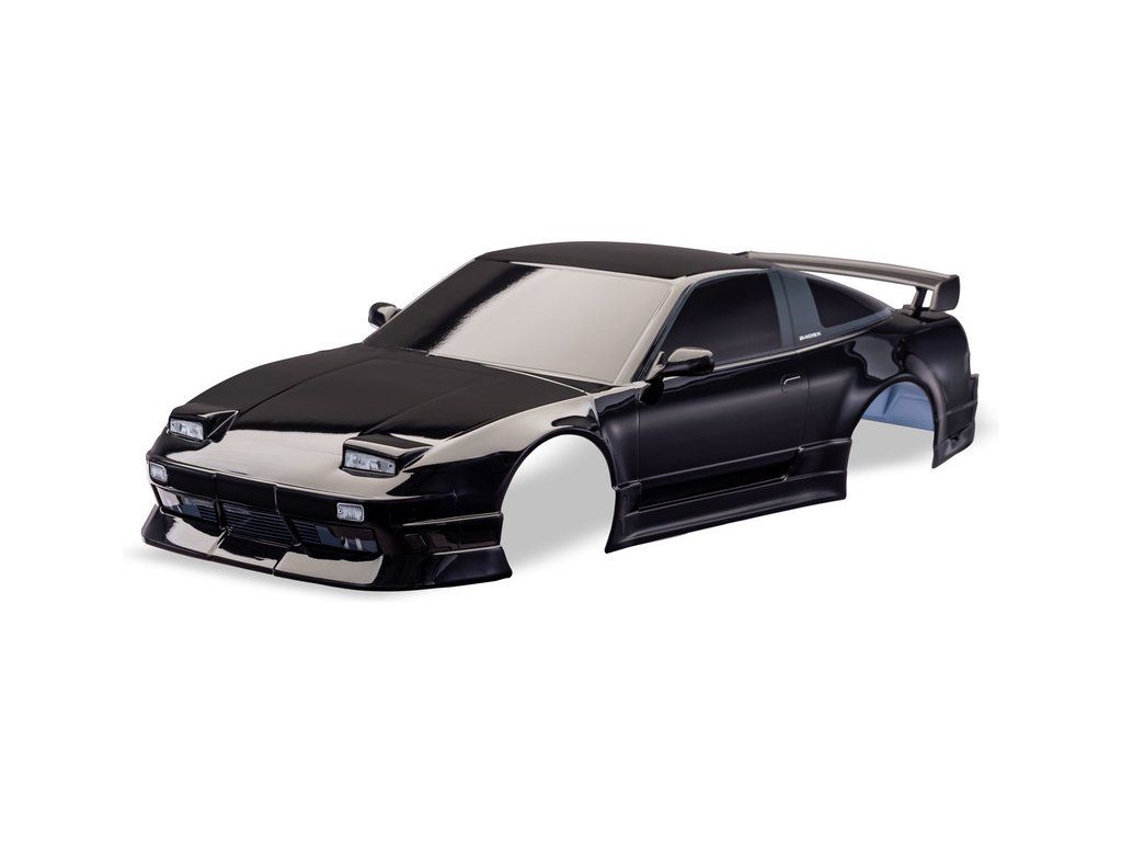 Traxxas karosérie Nissan 240SX černá. Hotová, nabarvená karoserie, včetně instalovaného bezsponkového držáku.