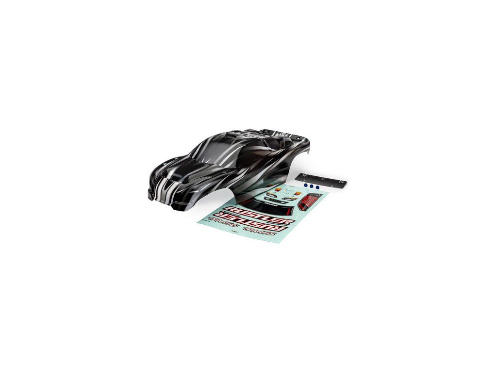Traxxas karosérie Rustler ProGraphix, s předtištěnou grafikou, vyžaduje další barvení. Včetně archu samolepek. Vhoná i pro Rustler VXL.
