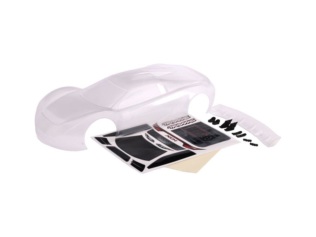 Traxxas karosérie XO-1 čirá (pro XO-1 V2) - vyžaduje barvení. Včetně křídla s držákem, arch samolepek.