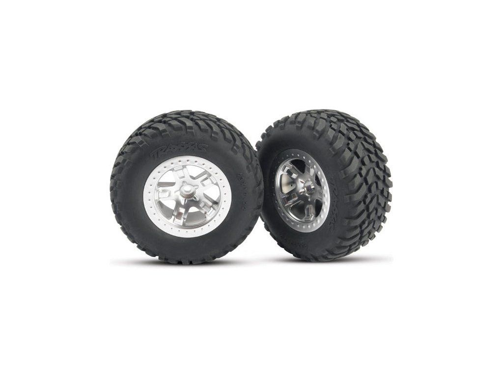 Kompletní přední kola pro 2WD auta Traxxas Slash. Saténový disky s nalepenými pneumatikami Off-Road a vložkou. Rozměr disku 61/81x42 mm. Celkový rozměr 110x46 mm. Unašeč je šestihran 12mm s offsetem 22 mm.