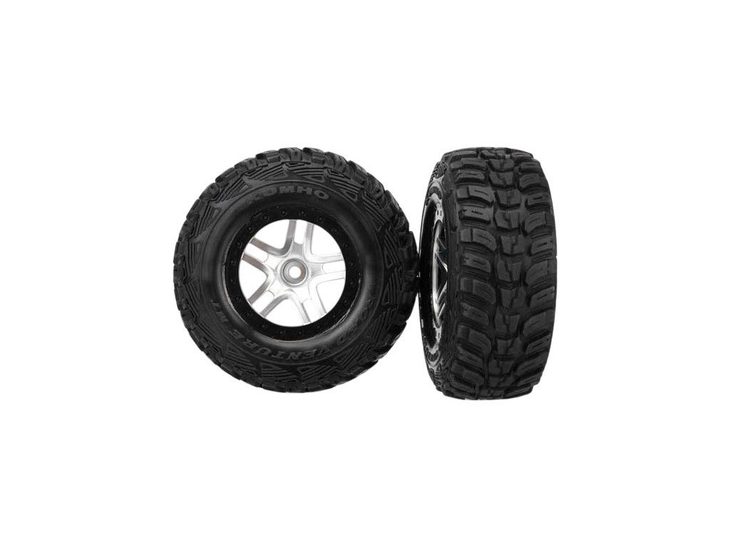 Kompletní zadní kola pro 2WD, přední i zadní pro 4WD RC auta Traxxas. Stříbrný disk Split-Spoke s černými ráfky s pneumatikami Kumho (super měkká směs S1) s vložkou. Rozměr disku 61/81x42 mm. Celkový rozměr 110x46 mm. Unašeč je šestihran 12mm s offsetem 24 mm.