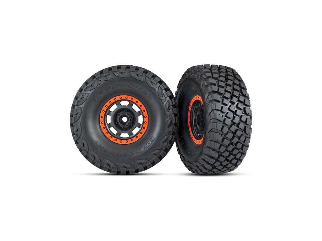 Kompletní univerzální kola pro Traxxas Unlimited Desert Racer. Disky Desert Racer® v černém provedení s oranžovými ráfky a pneumatikami Baja KR3 (2 ks v balení). Rozměr disku 60/82x40 mm. Celkový rozměr 135x56 mm. Unašeč je šestihran 17 mm s drážkami a offsetem 25 mm.