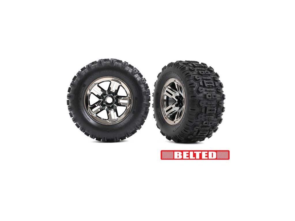 Traxxas kolo 3.8", disk černý chrom, pneu Sledgehammer belted (2)