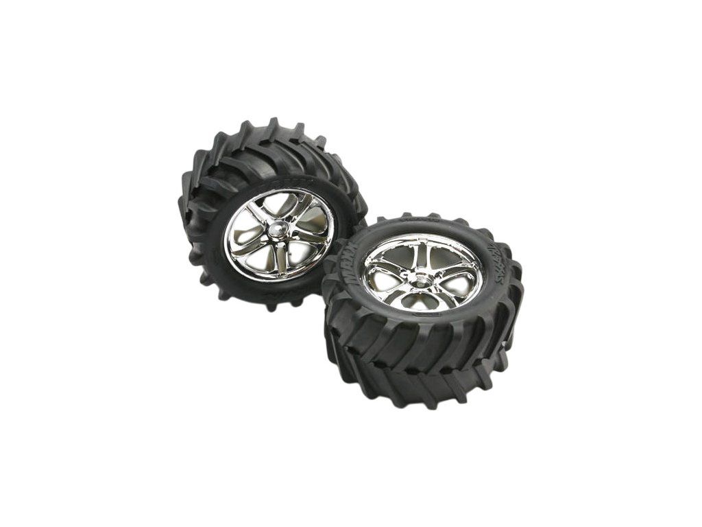 Traxxas kolo 3.8", disk Split Spoke H14 stříbrný, pneu Maxx Chevron (pár)