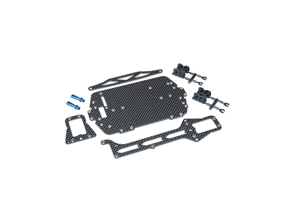 Traxxas konverzní kit z uhlíkových vláken je určen jako náhrada dílů šasí pro RC modely aut LaTrax Rally a Teton.