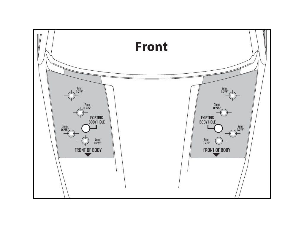 Balení obsahuje přední a zadní držáky, západky karoserie, montážní příslušenství, lepící šablony.