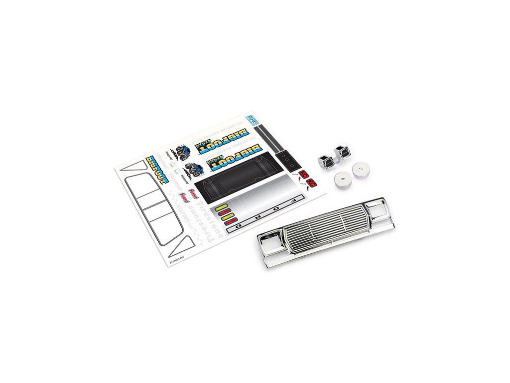 Konverzní sada pro změnu RC auta Traxxas TRX-4MT Ford F-150 na originální monster truck BIGFOOT ® č. 1. Sada obsahuje přední masku, maketu motoru a samolepky. Určeno pro karoserii Ford F-150 (#9812).