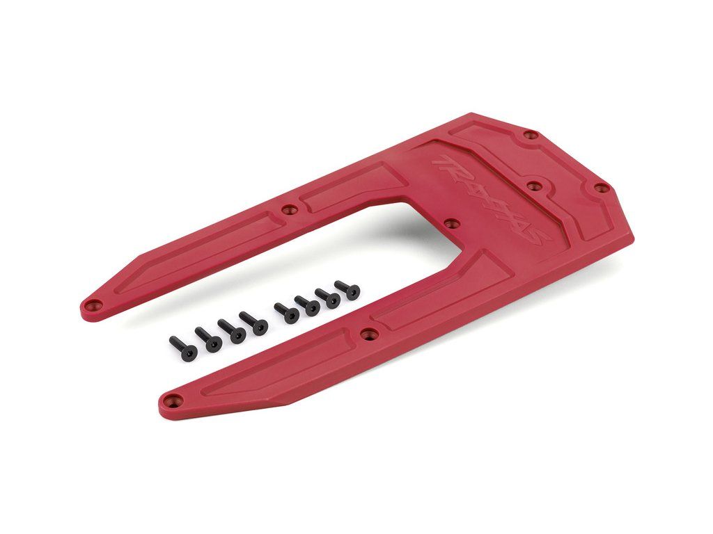 Tuningový díl pro RC model auta Traxxas Sledge: kryt šasi červený. Slouží k ochraně spodní části hliníkové šasi proti poškrábání a poškození. Včetně šroubů k montáži.