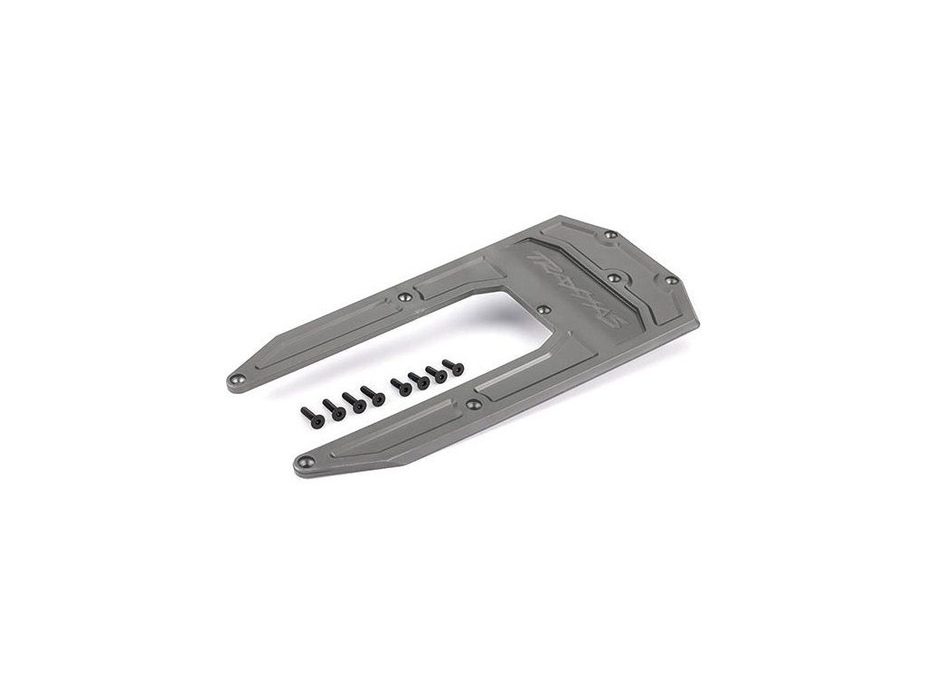 Tuningový díl pro RC model auta Traxxas Sledge: kryt šasi šedý. Slouží k ochraně spodní části hliníkové šasi proti poškrábání a poškození. Včetně šroubů k montáži.