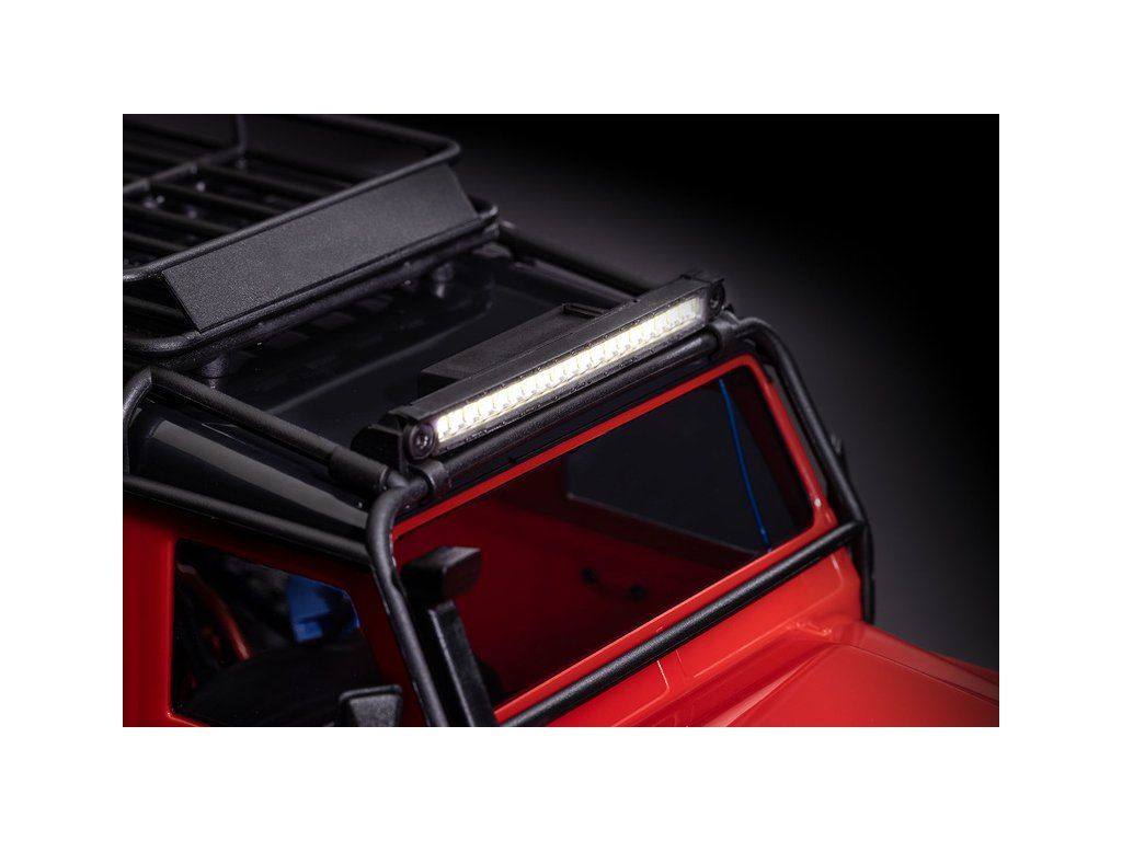 Balení obsahuje střešní LED lištu, přední LED lištu a držáky pro montáž na modely TRX-4M Defender, nebo TRX-4 M Bronco a další montážní příslušenství. Manuál EN, DE, FR, SP.
