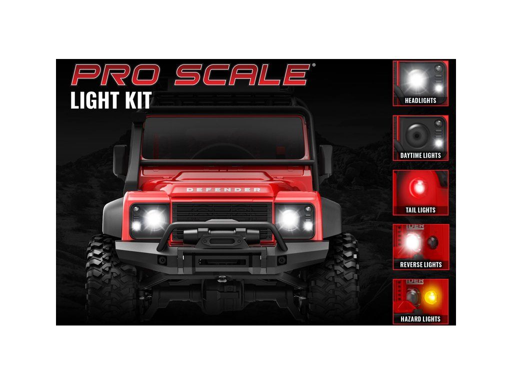 Traxxas LED osvětlení ProScale kompletní pro RC model auta TRX-4M 1:18 Land Rover Defender. Instalací sady získáte realistické funkce jako na skutečné autě (přední světlomety, koncová světla, funkční brzdová a zpátečková světla, výstražná světla).