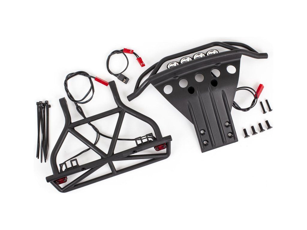 Balení obsahuje přední a zadní nárazník s LED osvětlením, Y-kabel pro zapojení do přijímače, montážní příslušenství. Návod CZ a manuál EN, DE, FR, SP.