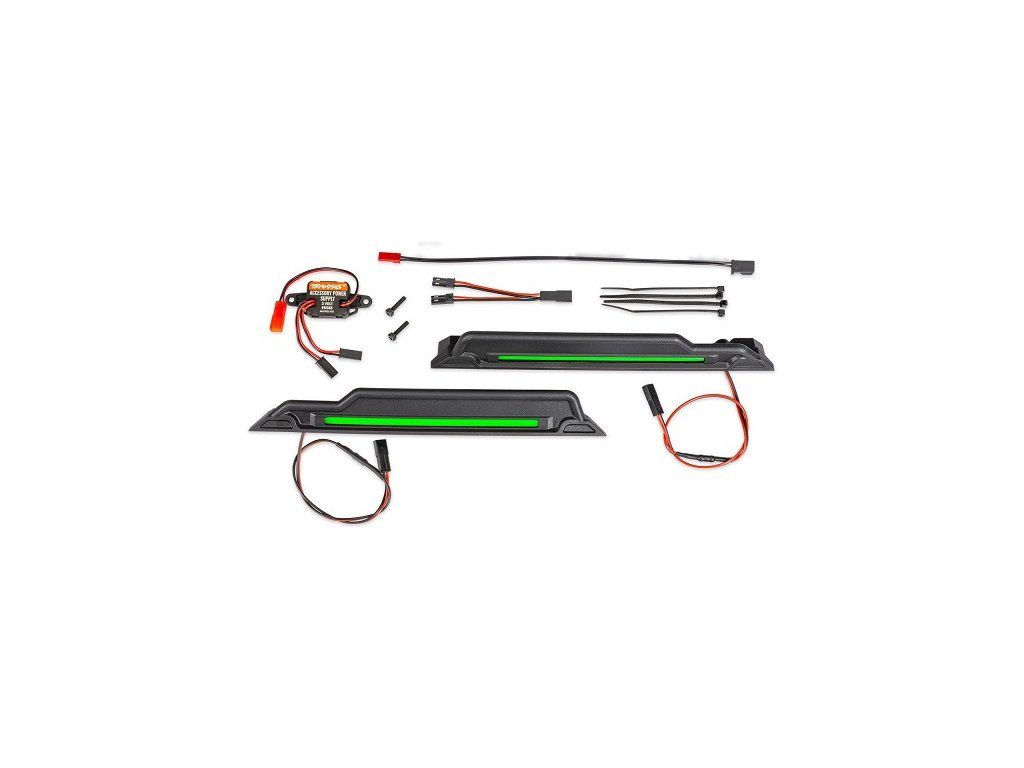 Traxxas LED podsvícení zelené pro Traxxas Funco, které doplní úžasný vzhled RC modelu. Barevné LED osvětlení je integrované do bočních prahových Nerf lišt a stylově osvítí cestu pod modelem. Součástí balení je 3V napájecí zdroj a montážní příslušenství.