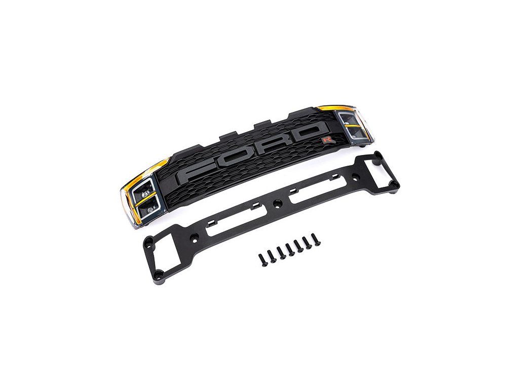 Náhradní díl pro karoserii Traxxas Ford Raptor R 4WD - maska přední s držákem, sestavená, včetně parabol světel a montážních šroubů 3x10mm BCS (7).