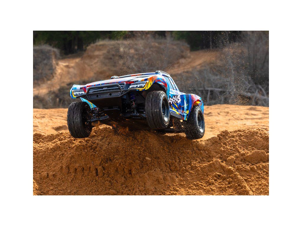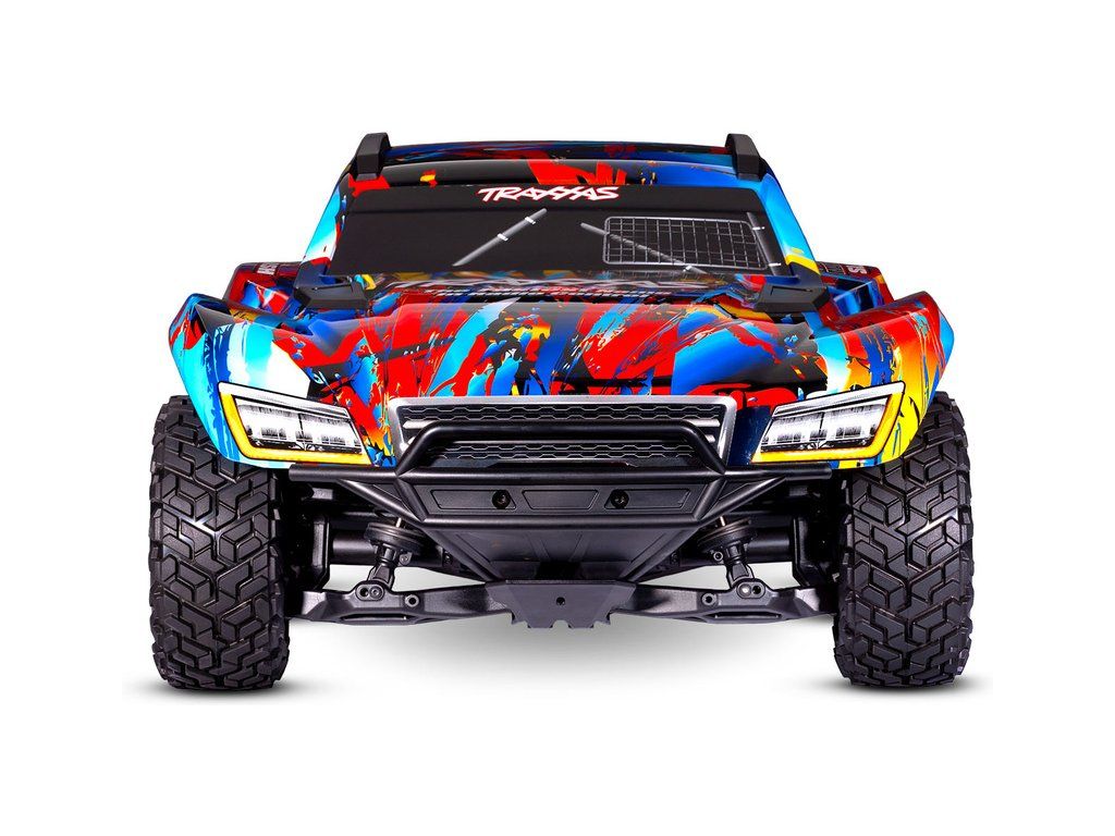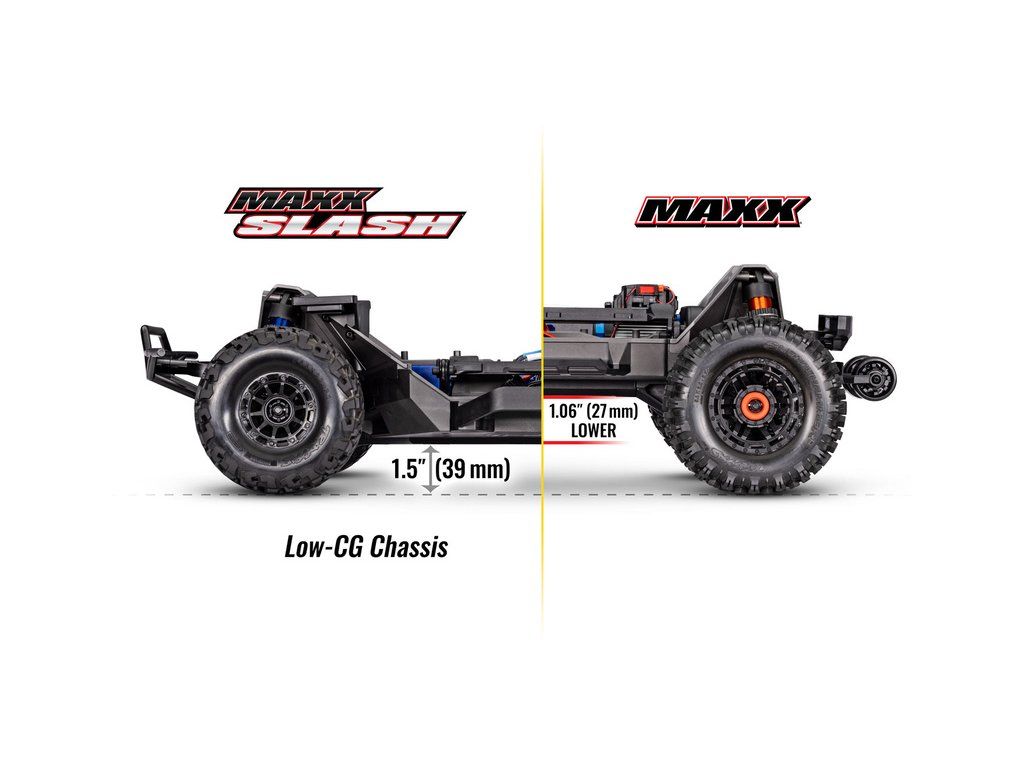 Výkonný RC model Traxxas Maxx Slash zvětšený na měřítko 1:8, postavený na robustním šasi Maxx s výkonným střídavým pohonem 6S. Model poskytuje brutální akceleraci, odolnost a rychlost až 112 km/h. Obsahuje vylepšené pohonné ústrojí, bezsponkovou karoserii a RC soupravu TQi.