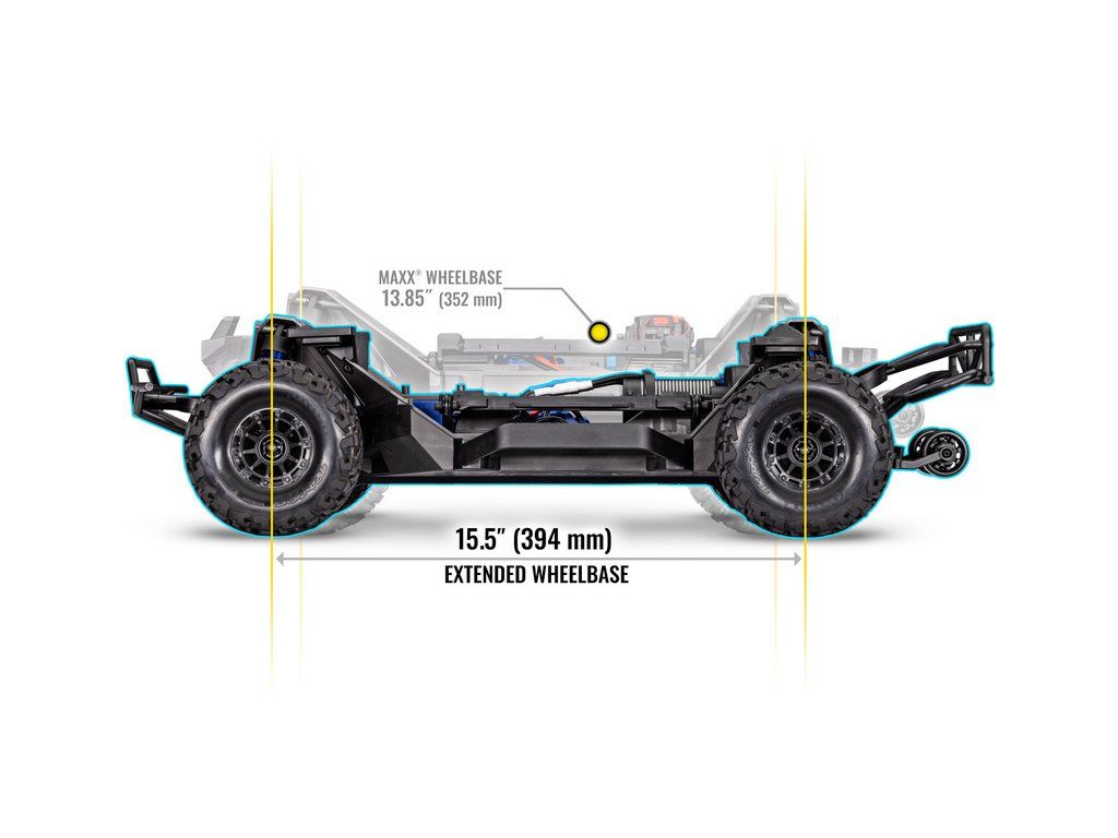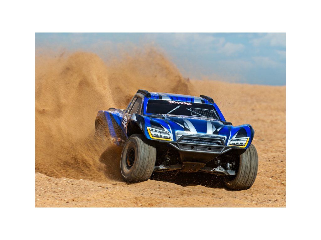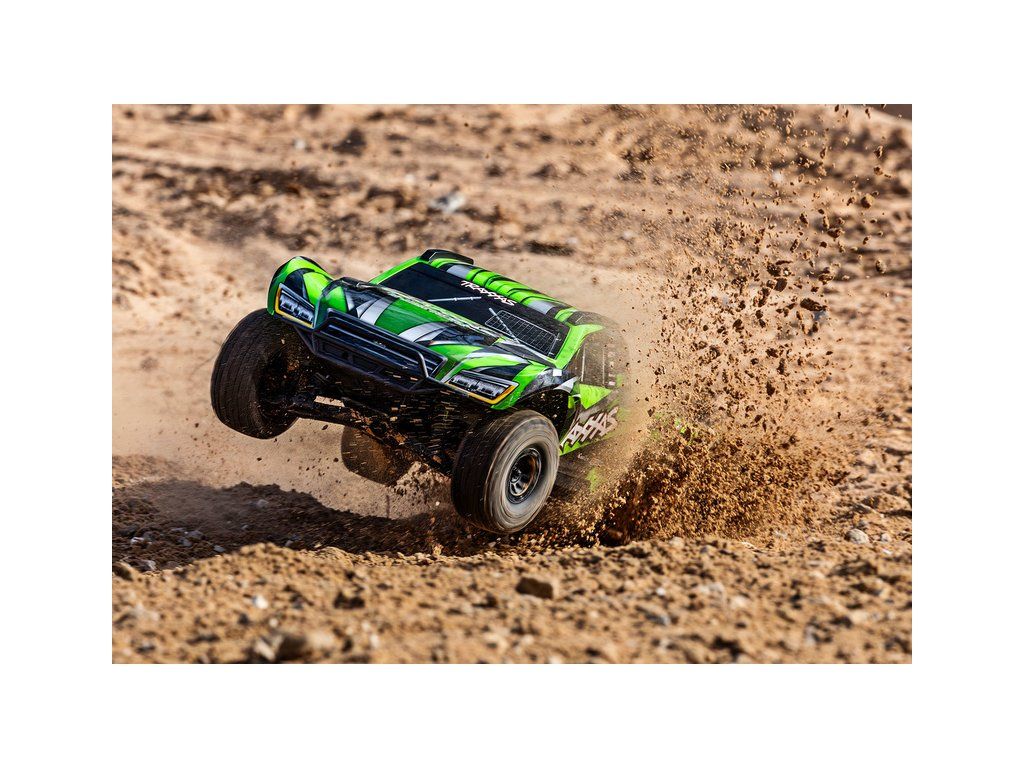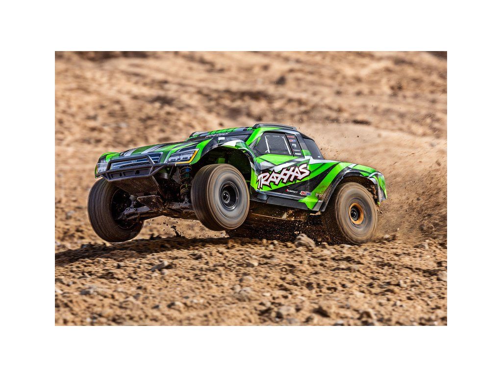 Výkonný RC model Traxxas Maxx Slash zvětšený na měřítko 1:8, postavený na robustním šasi Maxx s výkonným střídavým pohonem 6S. Model poskytuje brutální akceleraci, odolnost a rychlost až 112 km/h. Obsahuje vylepšené pohonné ústrojí, bezsponkovou karoserii a RC soupravu TQi.
