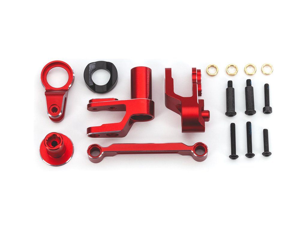 Tuningový díl pro RC model auta Traxxas Maxx Slash: mechanika řízení z odolného hliníku 6061-T6, červeně eloxovaného pro perfektní vzhled. Zvyžte pevnost a přesnost řízení modelu. Kompatibilní také s hliníkovou pákou TRA10247.